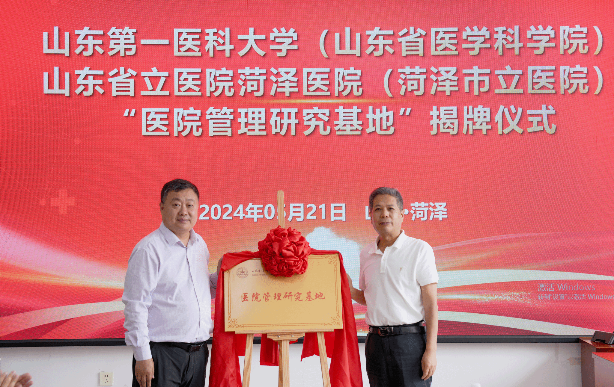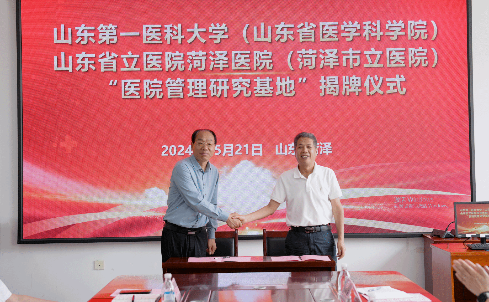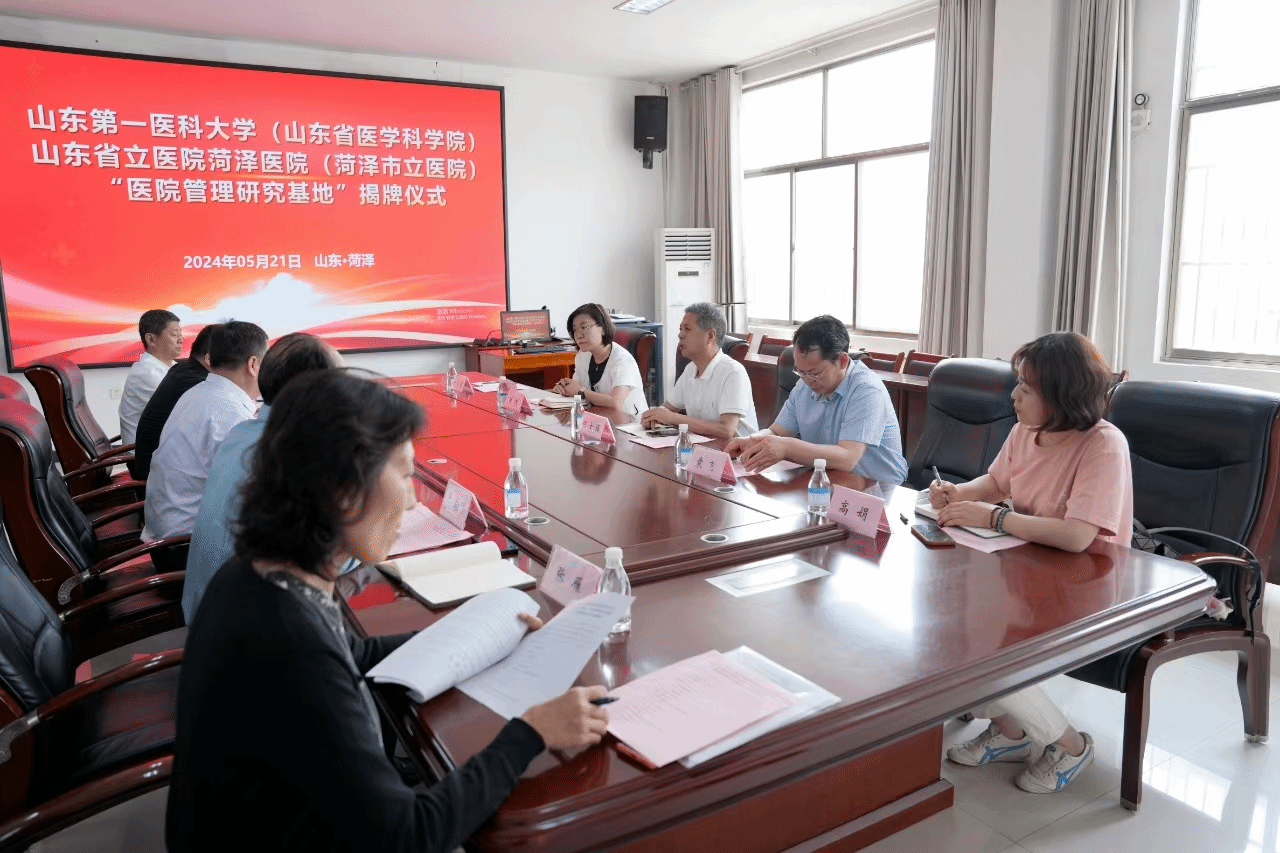 为加强实践教学,促进产教研融合发展,提高人才培养质量,5月21日,山一大球王会陈士福一行到山东省立医院菏泽医院(菏泽市立医院)挂牌“医院管理研究基地”,并签订了合作框架协议。山东省立医院菏泽医院(菏泽市立医院)党委委员、执行经理赵序利、党委副书记王强、副经理张全忠、球王会经理陈士福、公共事业管理系主任袁飞、科研办主任王燕、教学办主任高娟出席活动。