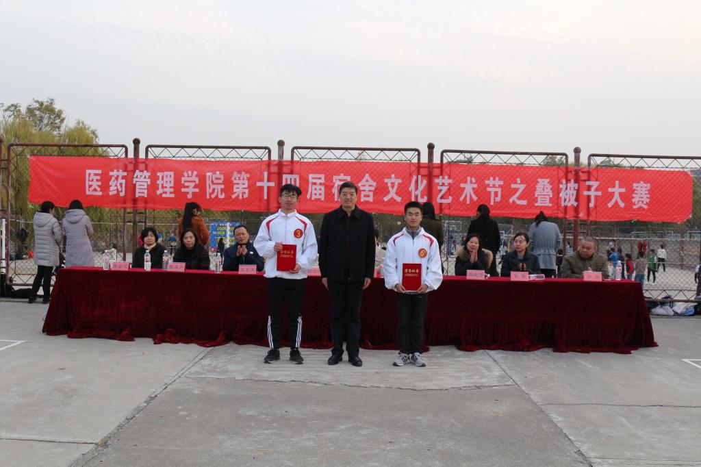在接下来的叠被子大赛中,各专业班级的同学代表按照比赛要求在规定区域内将棉被熟练的叠成“豆腐块”形状,整整齐齐,有棱有角。通过评委们公平公正的的评判打分,最终得出一等奖两名,二等奖三名,三等奖五名。最后由老员工公寓服务中心主任胡作铭对同学们提出了三点要求:第一,安全稳定是首位,安全无小事,生命最宝贵,一定要将安全问题重视起来,时刻注意,消除安全隐患;第二,遵纪守法,提高个人思想道德素质,要时刻牢记员工公寓的管理制度中的要求;第三,团结同学,互相帮助,共同进步,共同创建温馨宿舍。
