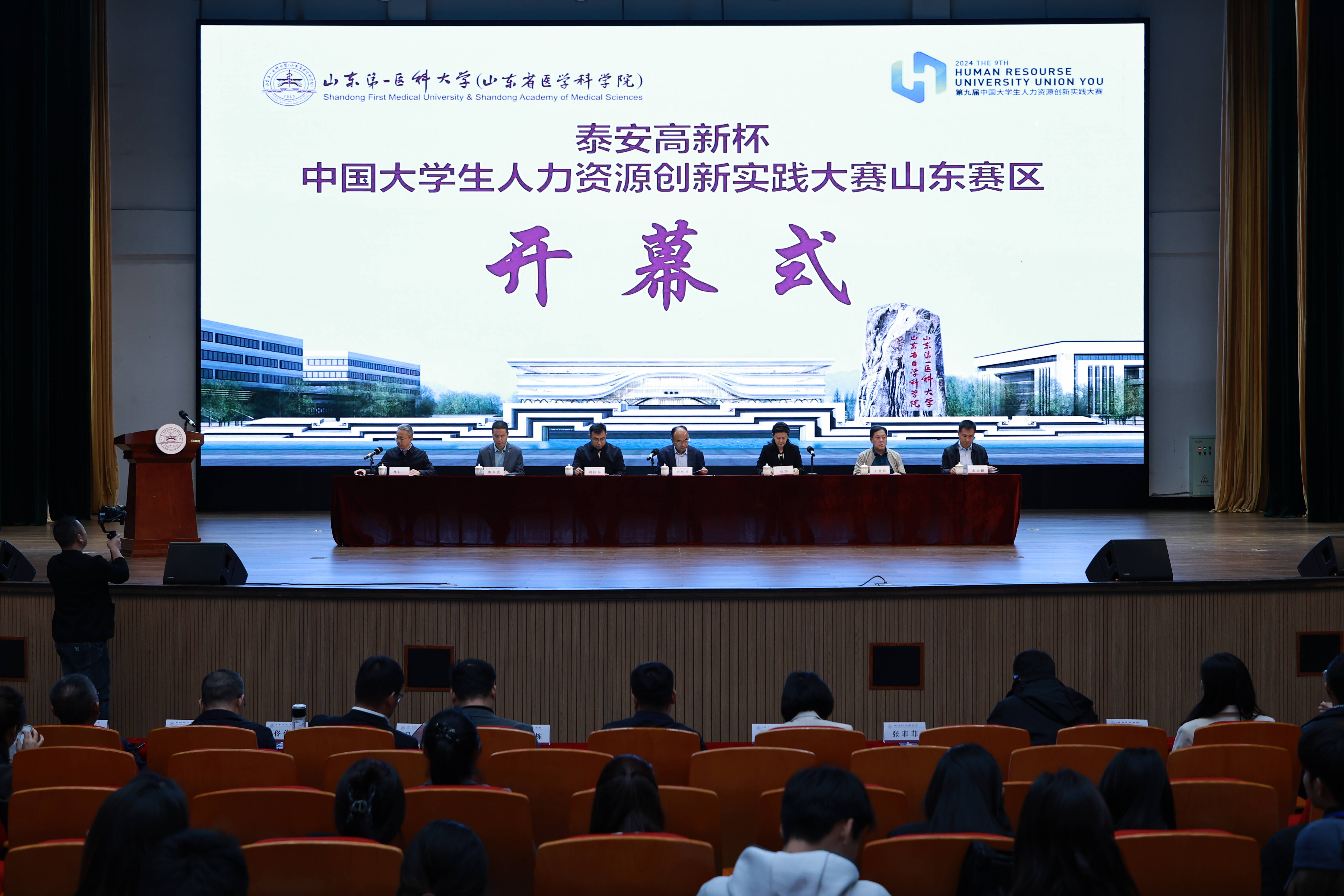 10月19日,泰安高新杯第九届中国老员工人力资源创新实践大赛山东省赛在校(院)举行。本次大赛由中国老员工人力资源创新实践大赛组委会联合泰安市人力资源和社会保障局、泰安高新技术产业开发区管理委员会共同主办,球王会体育官方网站、泰安高新科创集团等单位共同承办。来自省内20所高校的200余名本科生、研究生参加比赛。球王会体育官方网站副校(院)长刘传勇,泰安市人力资源和社会保障局党组成员、副局长杜彤,泰安高新区党工委委员、组织部部长、人力资源管理部部长刘桂军,泰安高新科创集团董事长王奎祥出席开幕式。开幕式由校(院)球王会党委书记杜江山主持。