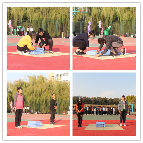 随后,叠被大赛正式开始,在宣读完比赛规则之后,各专业班级的同学代表一共是十组,同学们认真而又专注,按照比赛要求在规定区域内将棉被熟练的叠成“豆腐块”形状,整整齐齐,有棱有角,不时赢得观众们的阵阵掌声。最后在“轮舞青春”的轮滑表演中结束比赛,并由公寓服务中心主任胡作铭做了点评,并从安全稳定、珍惜年华、服从管理等三个方面提出了要求。经过评委们的公正评判,本次活动最终评出一等奖两名、二等奖三名、三等奖五名。