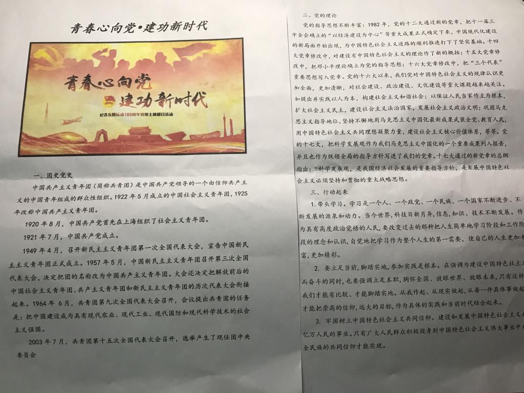 为纪念五四运动,传承五四精神,根据团中央和校团委的要求,从4月中旬开始,球王会各级团支部陆续开展了“青春心向党 建功新时代”纪念五四运动100周年特别主题团日活动,通过多种形式学习并传承五四爱国精神。