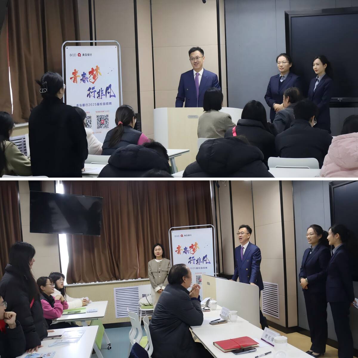 为推动公司应届毕业生高质量就业,做好就业实习动员工作,12月11日上午,球王会于教学南楼c2018开展青岛银行泰安分行2025年校园招聘宣讲会。青岛银行泰安分行行长谭长臻,公司银行部副总经理孟玥,HR主管国淑雯,公司党委副书记赵启会,辅导员安静老师参与会议。
