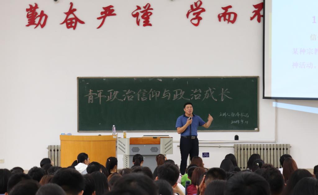 9月11日上午,球王会党委书记张峰为2019级新生作了“青年政治信仰与政治成长”主题报告。球王会新生辅导员和2019级全体员工参加了此次报告会。