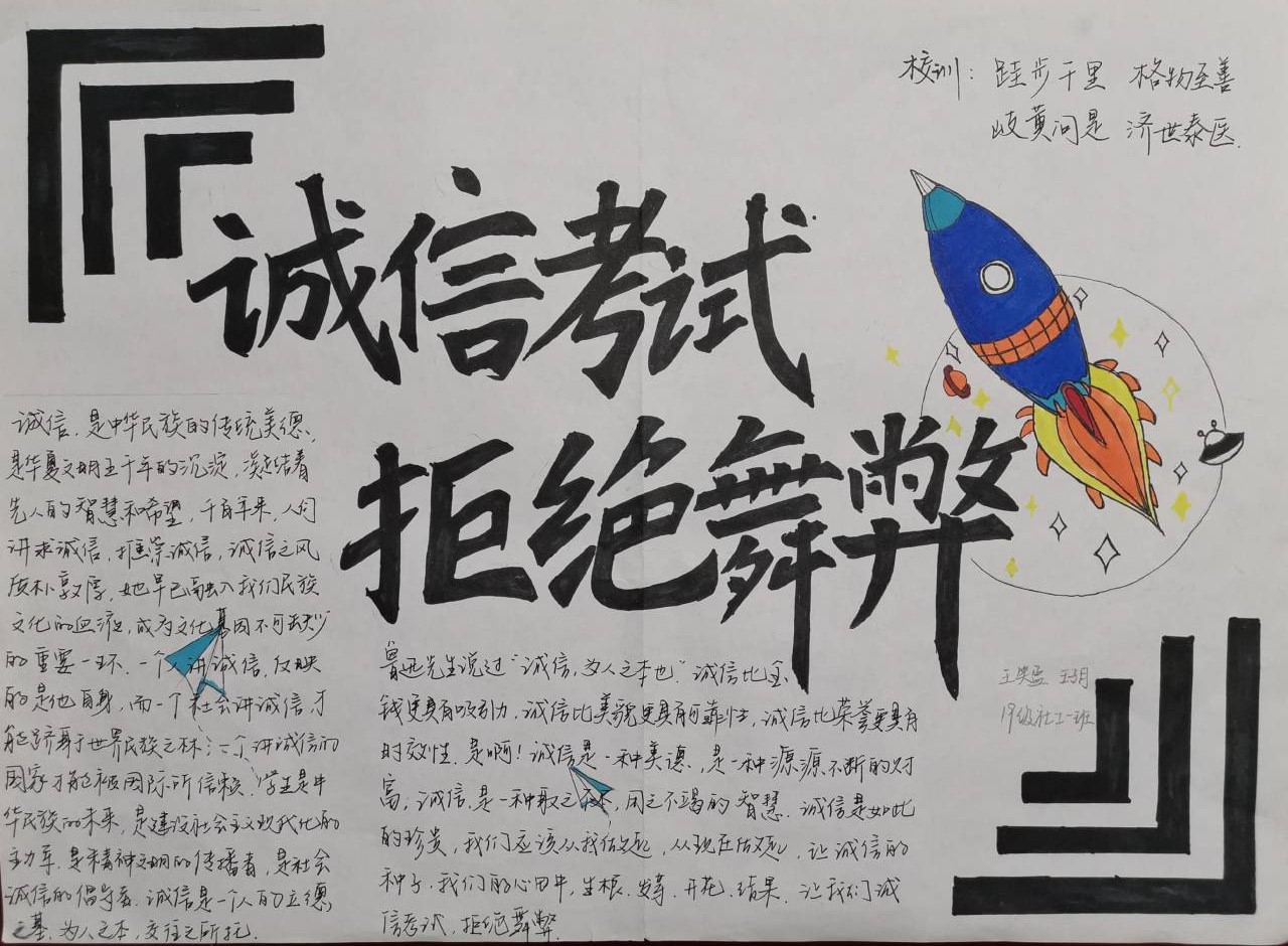 其中,手抄报征集比赛,同学们自主设计编写的手抄报内容丰富,图文并茂,为制作好手抄报,同学们积极寻找资料,进一步加深了对于诚信应考的认识。柳文琳等同学取得手抄报征集比赛一等奖,韩尚言等同学取得二等奖,张怡帆等同学取得三等奖。