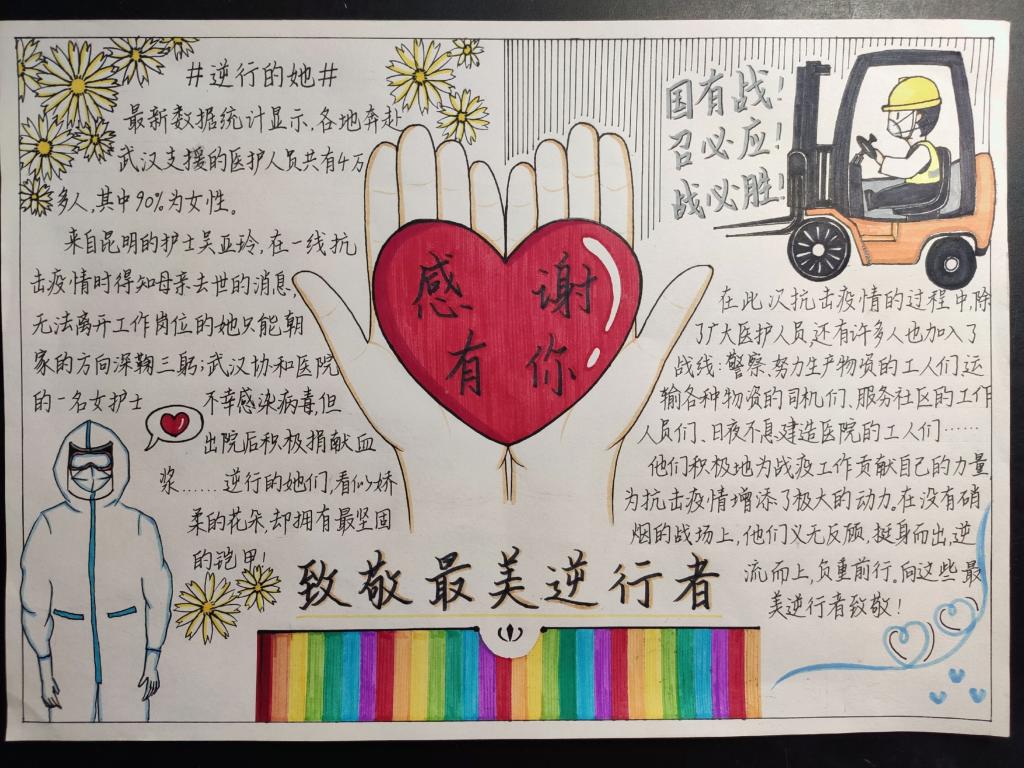 为颂扬奋斗在抗击疫情一线工作人员的感人事迹,更好的宣传疫情防控知识,体现公司学子面对疫情乐观积极的健康心态和昂扬向上的精神面貌,球王会在三月份举办了“无畏前行,只为安宁——致敬最美逆行者”手抄报征集活动。