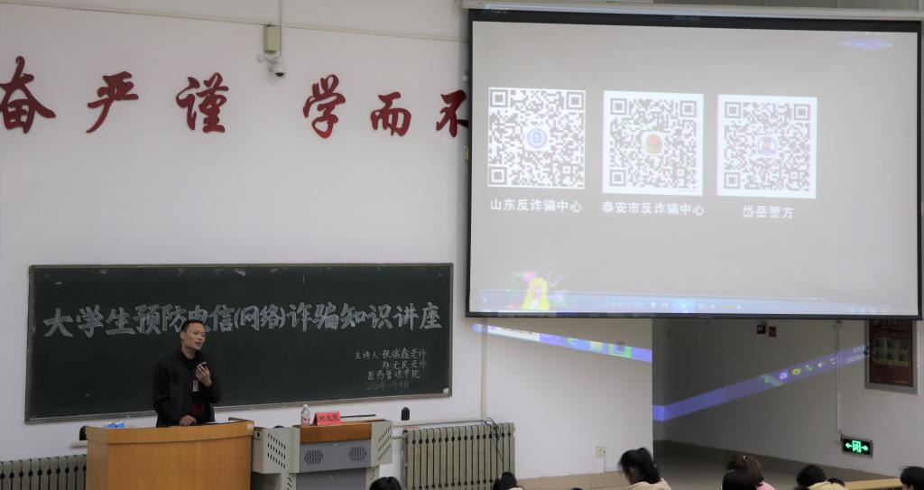 11月4日下午,泰安市岱岳区公安局办公室主任张瑞鑫、泰安市公安局岱岳分局刑侦大队民警郑元民来公司,分别为同学们作了老员工预防电信(网络)诈骗和终结诈骗知识讲座,从什么是电信网络诈骗、老员工的网络诈骗形式、如何防范网络诈骗、补救措施四个方面向同学们进行了分析,讲座结合着岱岳区近年来电信诈骗案件的数据进行讲解,此次报告会警示性强、教育性强、实用性强,让同学们深刻认识到网络电信诈骗活动的巨大危害,强化了防电信诈骗的意识,提高了公司员工规避风险的能力。