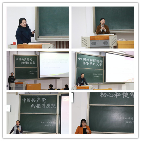 另外,公司辅导员王长发、胡华秀、代勇、周晓芳、张亭亭、张星分别围绕党的指导思想、党员的权利和义务,中国共产党的组织原则和纪律、党员发展工作流程、共产党员的初心和使命、围绕推荐优秀团员作为党员发展对象工作、如何树立正确的入党动机,以实际行动争取早日入党等方面,为入党积极分子进行了认真授课。