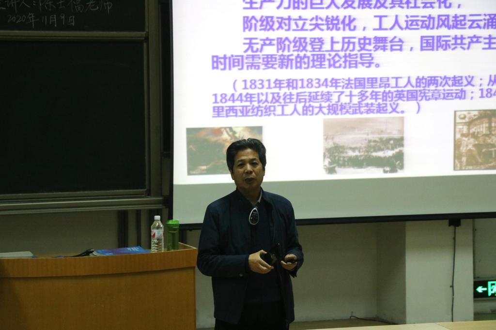 陈士福为大家解读了《共产党宣言》。首先阐释了《共产党宣言》对中国革命的影响,宣言发表的意义。讲解了其基本内容,包括序言、引文和正文。指出《共产党宣言》为中国共产党人的砥砺奋进照亮了前行道路,它阐释的马克思主义基本原理深刻影响了一代又一代中国共产党人,它似漫漫长夜中的一盏明灯,为在黑暗中苦苦跋涉的革命志士照亮了前行的方向。