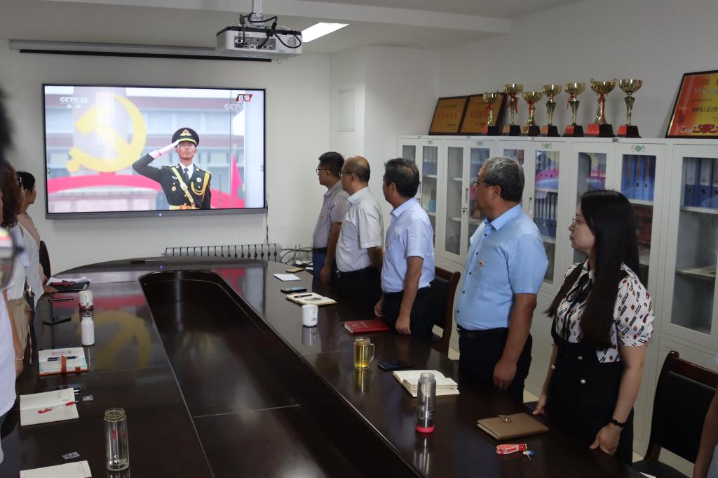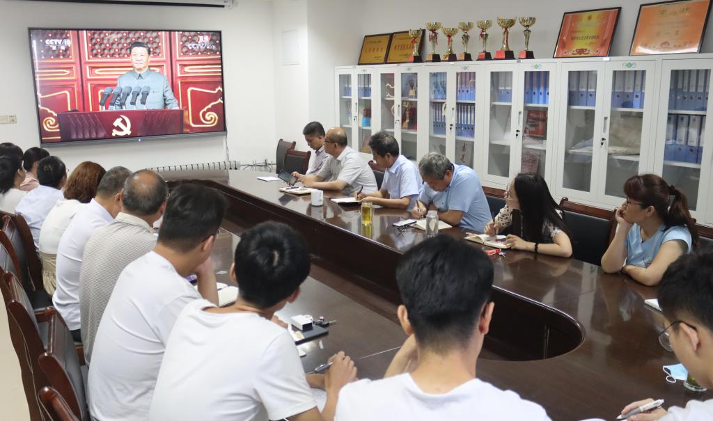 从七点五十分开始,与会人员早早来到公司会议室,做好收看的准备,大家认真看,仔细聆听习近平《在庆祝中国共产党成立100周年大会上的讲话》。
