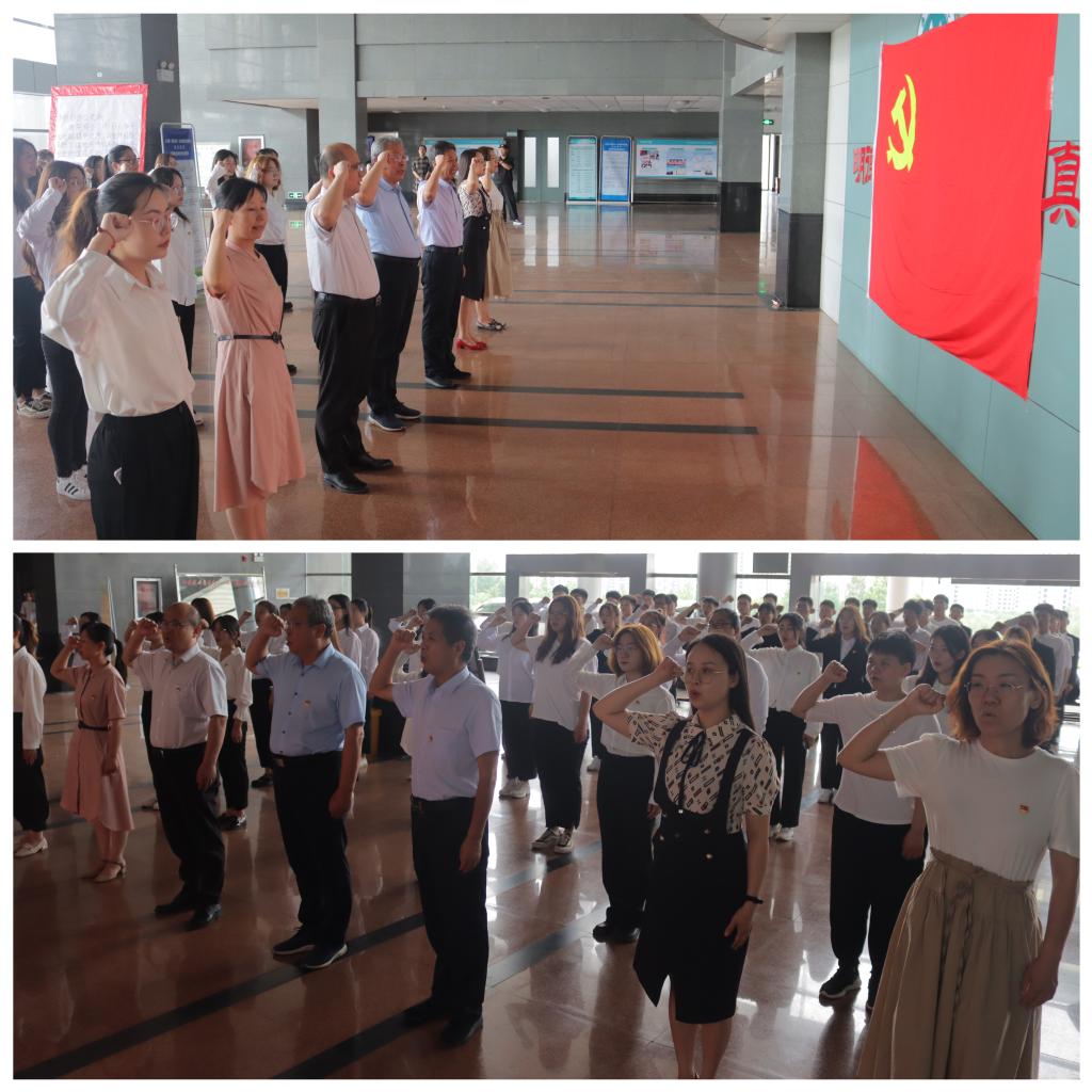 活动伊始,公司领导班子、教师党员代表和纳新党员代表在教学南楼A座大厅重温入党誓词,进行庄重肃穆的宣誓仪式。