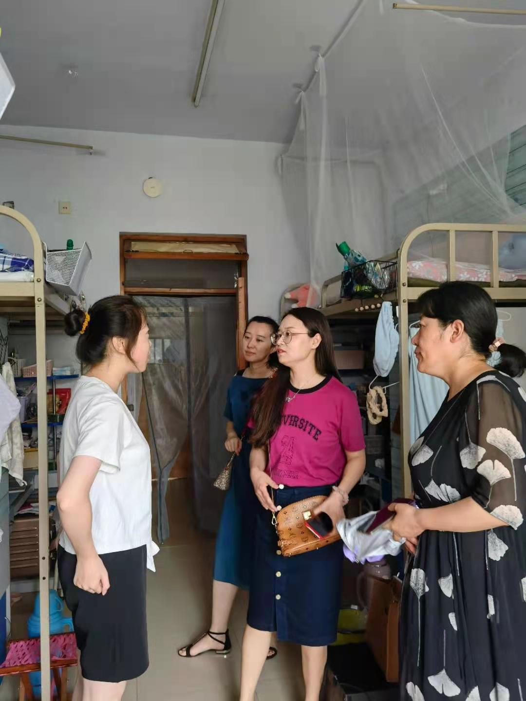 7月13日上午,球王会党委副书记胡睿带领全体辅导员老师深入员工宿舍走访,全面督查员工宿舍安全、卫生、纪律,及时了解同学们学习生活中的困难。