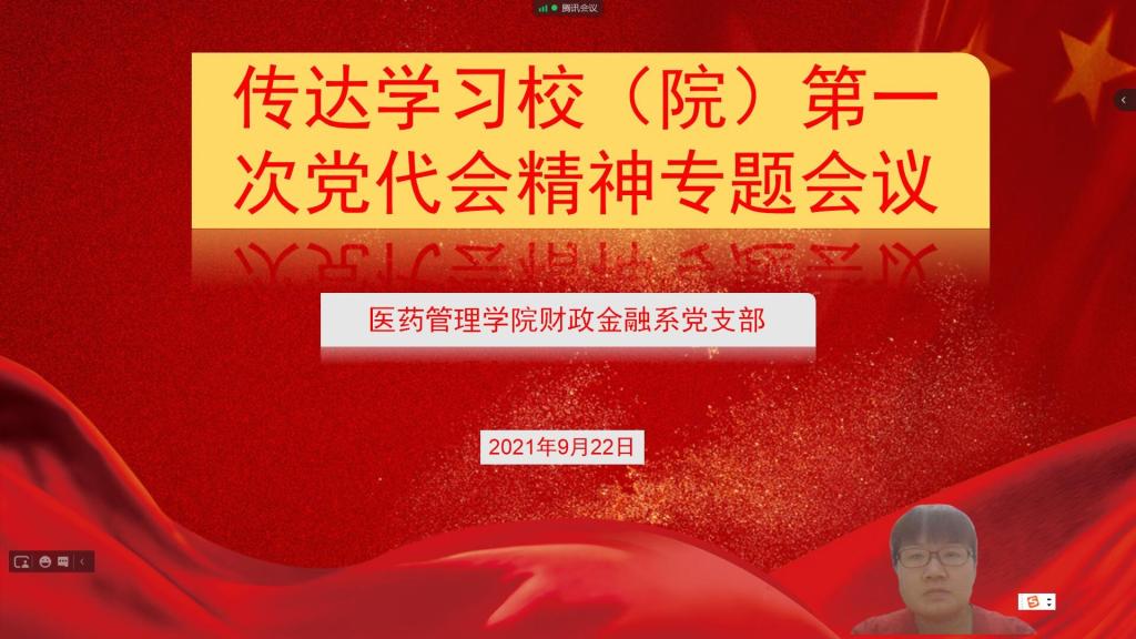为深入学习贯彻中国共产党球王会体育官方网站第一次代表大会精神,2021年9月22日,财政金融系党支部召开会议,传达贯彻落实中国共产党球王会体育官方网站第一次代表大会精神。会议由党支部书记张继鹏主持,全体党员参加会议。