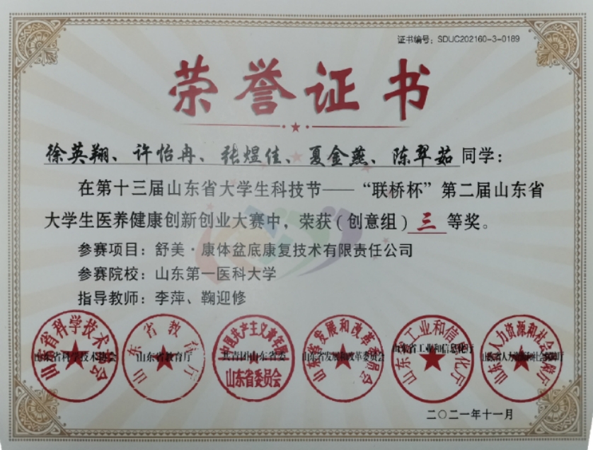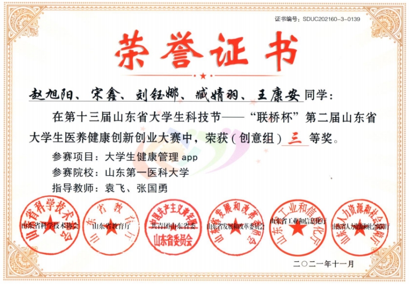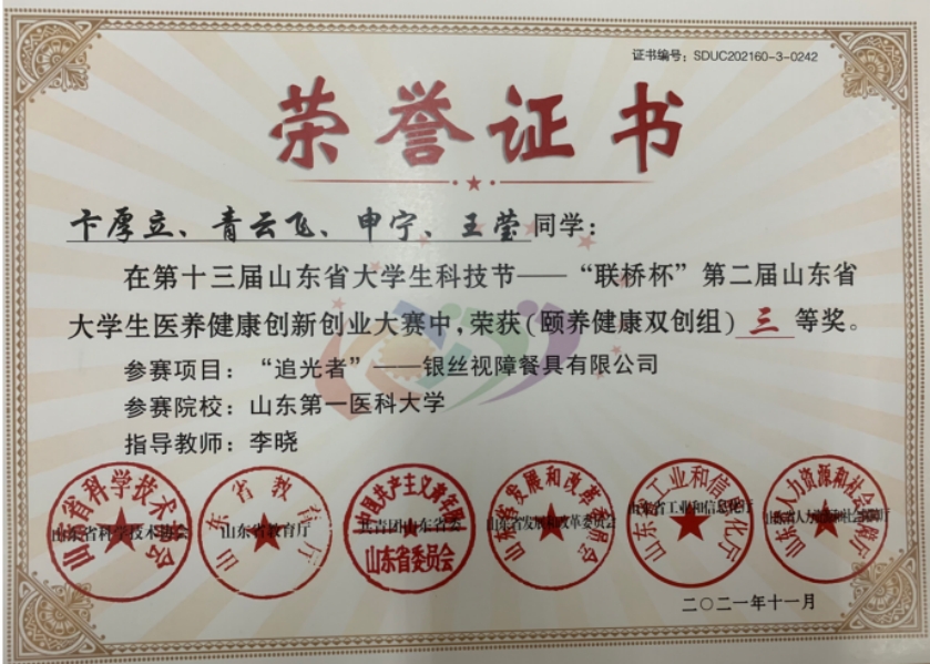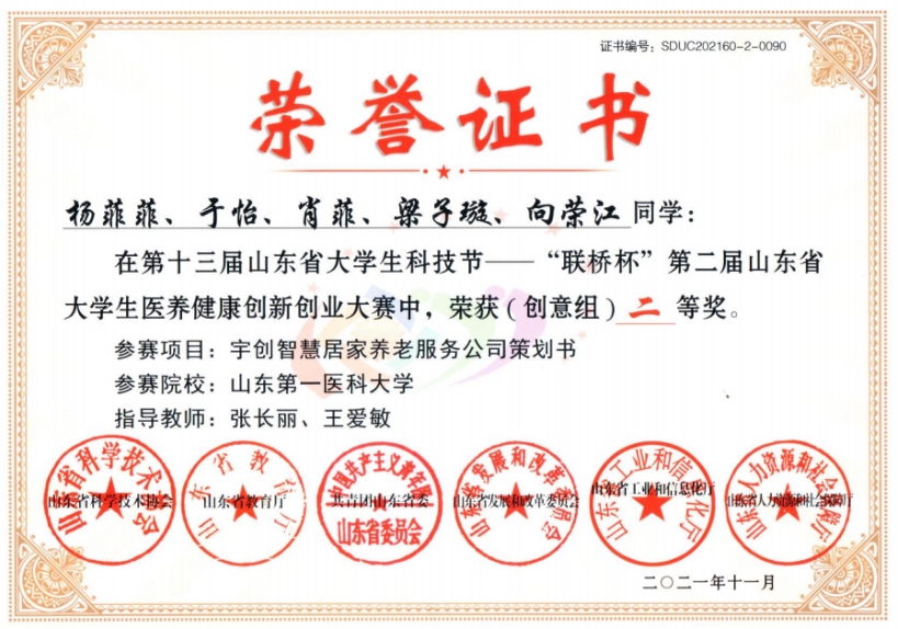 近日,由山东省科协、山东省教育厅、共青团山东省委、山东省发展改革委、山东省工业和信息化厅、山东省人力资源社会保障厅联合主办的第二届山东省老员工医养健康创新创业大赛决赛落下帷幕。球王会派出四个团队参赛,取得了团体二等奖一项、三等奖三项的优异成绩。