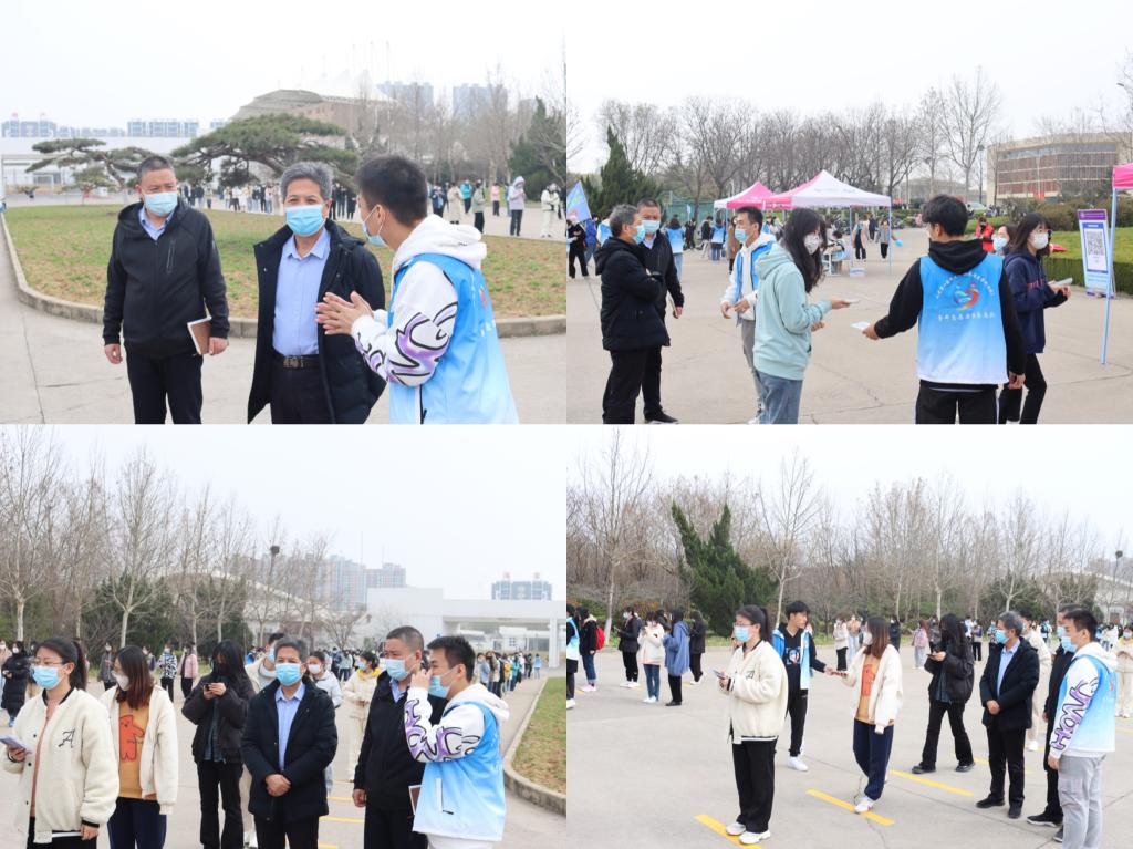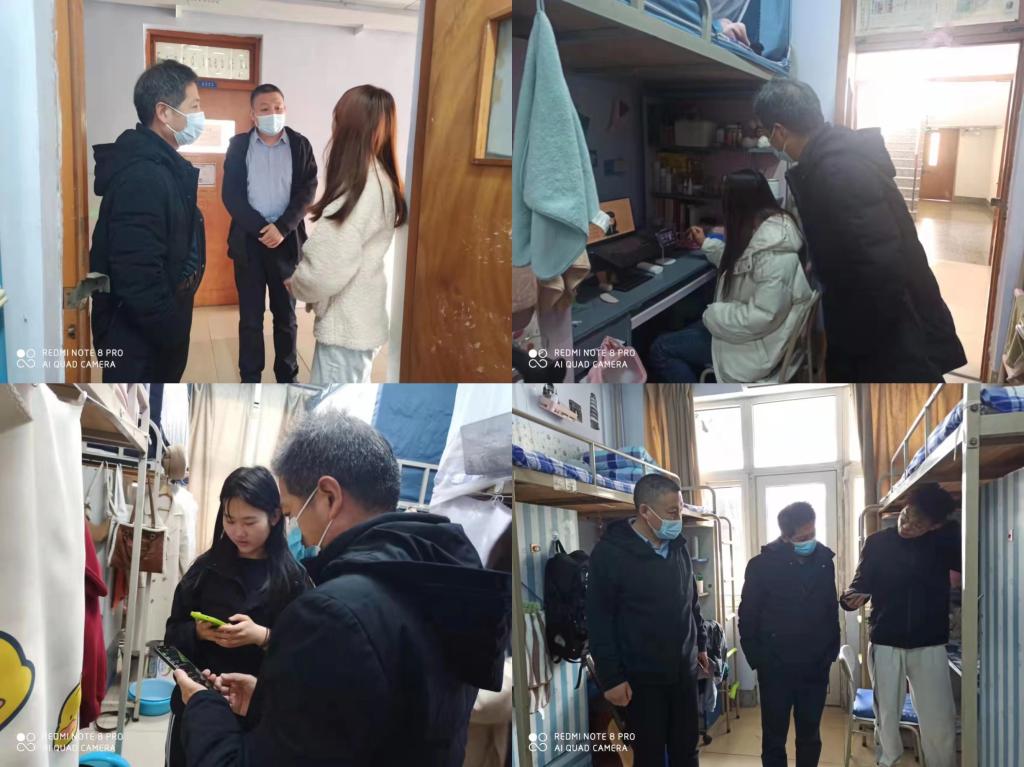 3月21日长城路校区实施闭环管理以来,球王会经理陈士福、党委副书记任纬兵、辅导员杨苗苗作为留守人员,坚持每天深入员工宿舍,督促员工上网课、了解员工生活学习情况;坚持每天到核酸抽检现场,了解检测流程、指导核酸检测。