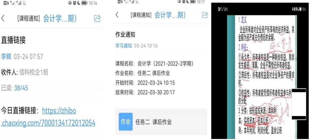 财政金融系李辉老师通过超星在线直播的形式,实现师生实时交流互动。课前发布直播链接,方便员工按时进入课堂;课中理论讲授与习题训练相结合,及时了解员工的学习情况;课后发布训练作业,有利员工巩固所学知识,发现员工知识掌握的薄弱环节。