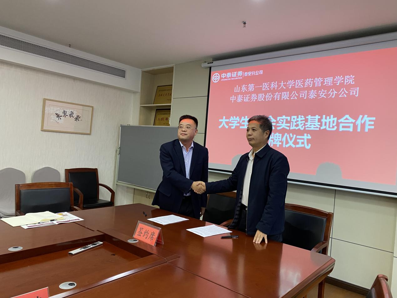 陈志伟介绍了中泰证券及泰安分公司的发展历程、基本概况、经营情况以及人才储备和培养的情况,期待双方在创新协同育人合作办学模式、精准对接专业人才培养、就业实习、企业培训、党建工作等方面发挥各自优势,促进共同发展。