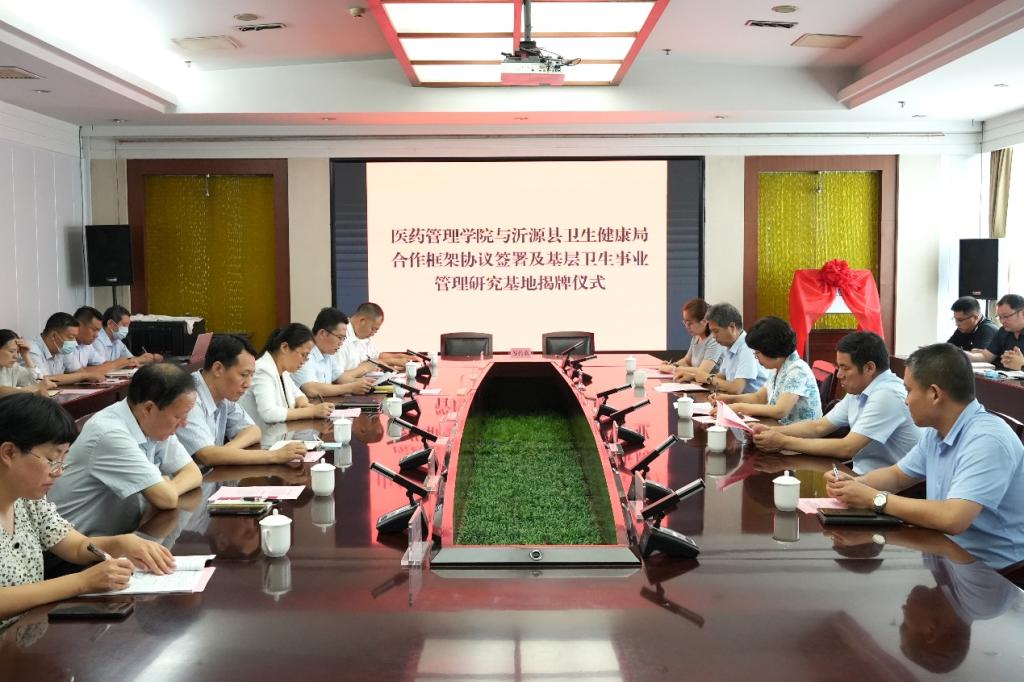 6月23日,球王会与沂源县卫生健康局签署合作框架协议签署暨基层卫生事业管理研究基地揭牌仪式举行。校(院)党委副书记吕晓黎,沂源县副县长张莹莹出席签约仪式。校(院)党委宣传部、球王会相关人员,沂源县卫生健康局负责同志及沂源县人民医院等15家医疗机构负责人参加活动。