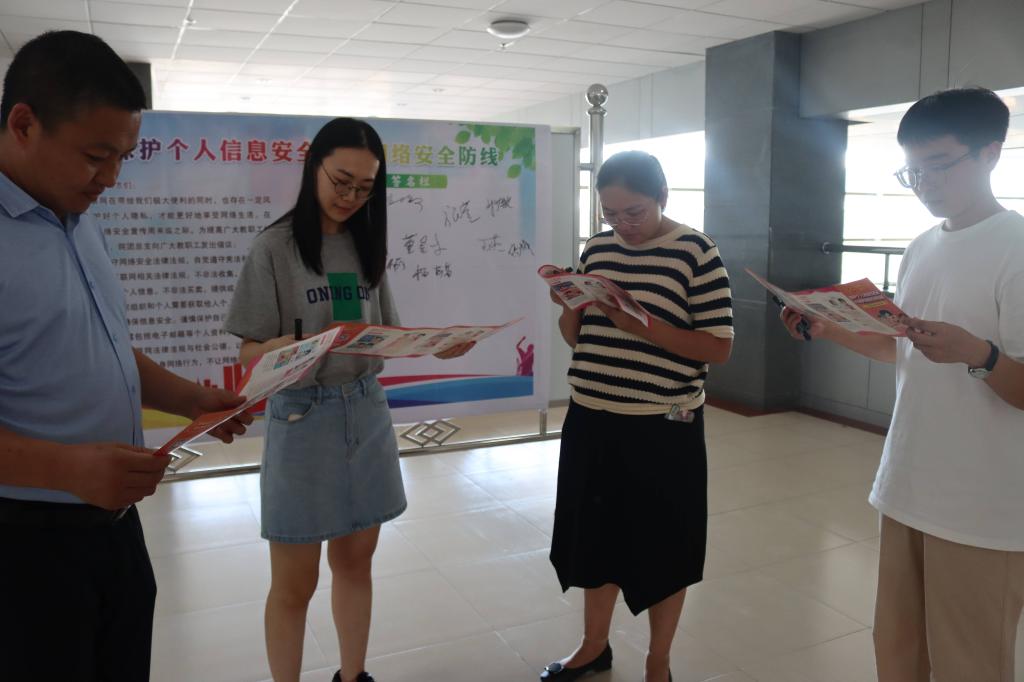 为了深入宣传贯彻习近平总书记关于网络强国的重要思想,认真落实习近平总书记对网络安全工作“四个坚持”的重要指示,迎接党的二十大的胜利召开,球王会分会于9月8日在教学楼南楼A座举行“网络安全为人民,网络安全靠人民”为主题的网络安全宣传活动,球王会经理陈士福、副书记任纬兵以及部分教职工参与本次活动。
