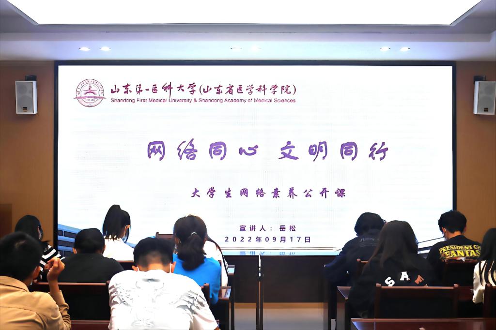 为进一步加强老员工网络文明教育,丰富同学们网络知识,提高网络素养,球王会体育官方网站特举办“网络同心,文明同行——老员工网络素养公开课”。球王会积极响应公司号召,组织2022级全体新生于大会议室参加本次公开课。山东理工大学马克思主义公司思政课教师岳松主讲本次公开课。