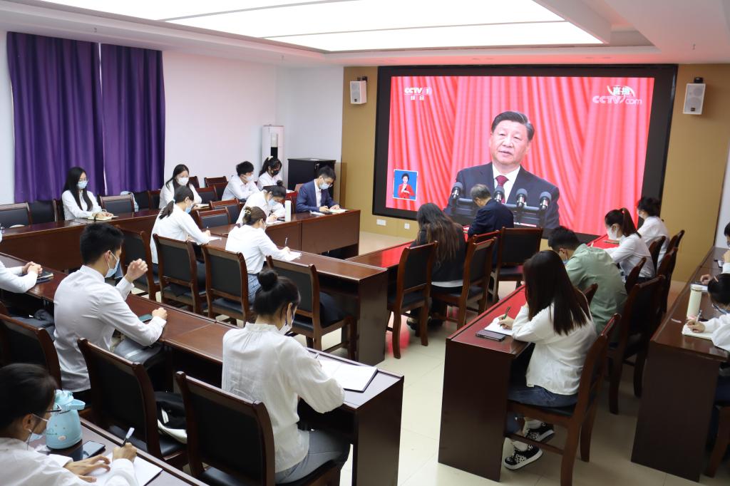 在做好疫情防控的前提下,根据校(院)的部署安排,球王会全体党员和广大师生通过各种方式收看开幕会盛况。驻守在校的领导老师和部分员工党员、入党积极分子及优秀员工代表在公司大会议室集中收看了大会直播盛况,其他师生分别在教室、宿舍进行了收听收看。师生们怀着激动的心情认真聆听,不时热烈鼓掌,畅谈心得体会。