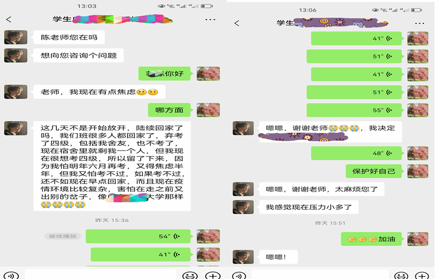 面对当前严峻的疫情防控形势,球王会本科生导师坚持以员工为中心,全面落实立德树人根本任务,时刻牵挂员工,人文关怀与学业指导不停歇,为本科生学习、生活保驾护航。封闭管理期间导师们围绕思想动态、积极抗疫、生活作息、专业学习等相关主题,组织开展了以线上为主、内容丰富的交流活动,引导员工保持平和心态、加强自我防护、注意饮食作息、积极参与线上学习,面面俱到,事无巨细。