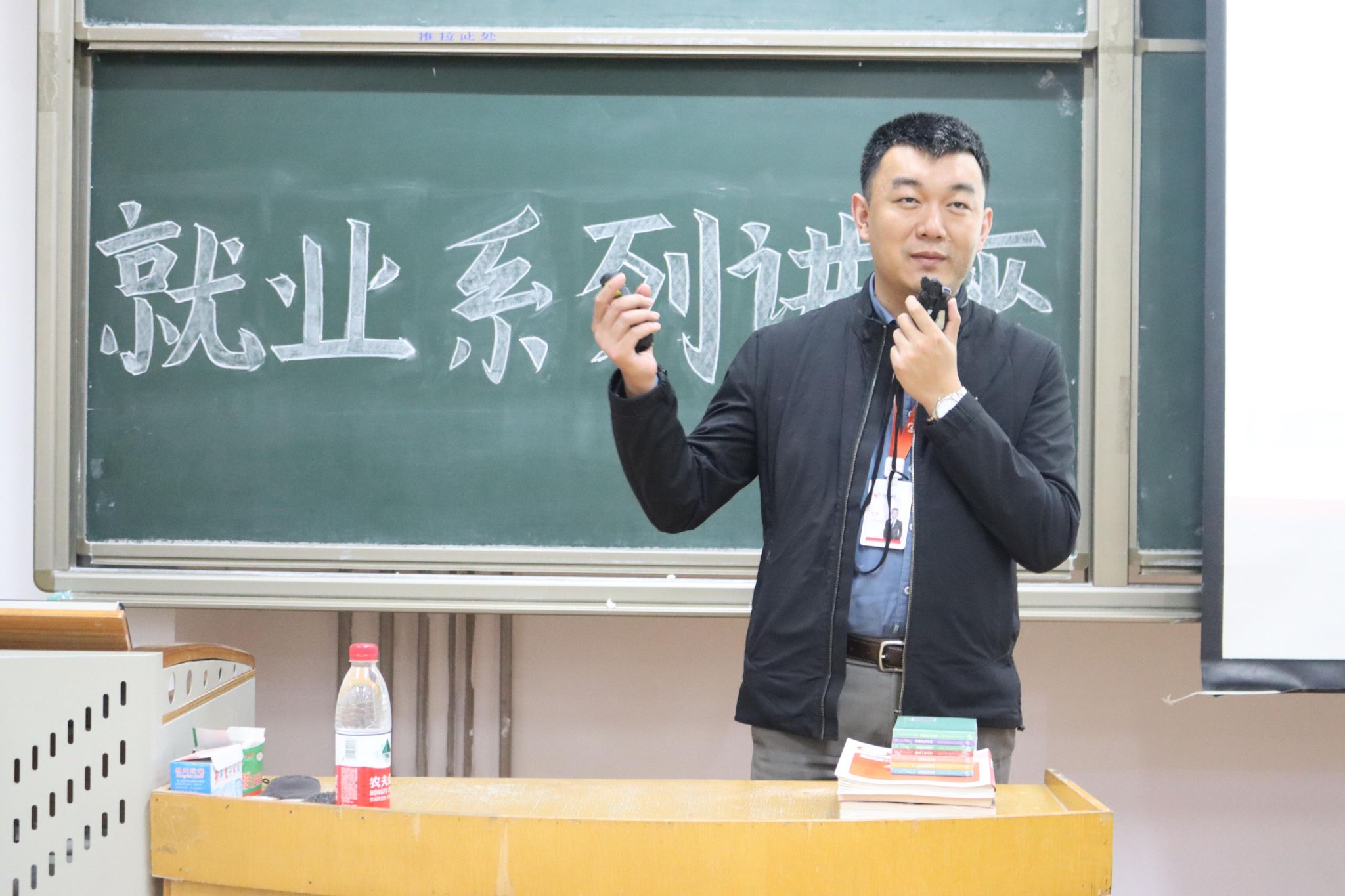 会上,张百川首先指出了考研的益处与困难,他表示考研为大家提供了一个进一步发展自己的平台,并用张雪峰的“学习是最简单的事”激励大家积极报考研究生考试,以进一步提高自身的学术水平。接着,他为大家介绍了国考及省考的时间、报考人数,向同学们讲述了公务员考试的分类和近年来的考录情况,提醒大家要结合自身的实际条件,选择适合自己的报考目标。随后,他从报考条件、招录人数、考试内容及竞争比等方面为大家详细讲解了选调生、山东事业单位统考、三支一扶、社会工作及军队文职等公职岗位,帮助同学们了解各类单位的考试信息和报考条件,引导同学们找到正确的备考方向。最后,张百川鼓励同学们要积极调整心态,发挥自身优势,在考公考编及求职过程中做到应报尽报,能考尽考。在提问环节中,现场气氛热烈,同学们纷纷向老师提出有关考研考编的疑惑,张百川对同学们的问题进行了详细的解答并送出相关书籍以作奖励,同学们在交流的过程中深受鼓舞。