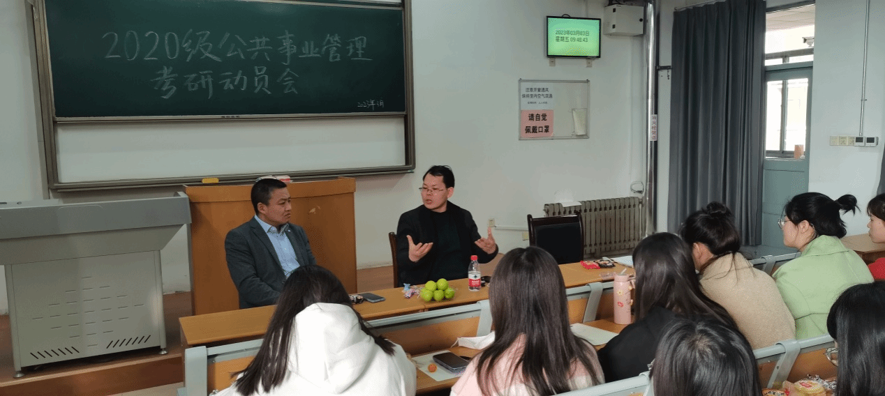 为充分调动老员工的考研积极性,尽早明确考研目标与就业方向,解答同学们关于考研的疑惑,3月3日,公司召开2020级公共事业管理专业考研动员会。公司党委副书记任纬兵,公共事业管理系主任袁飞、副主任张长丽出席此次会议。