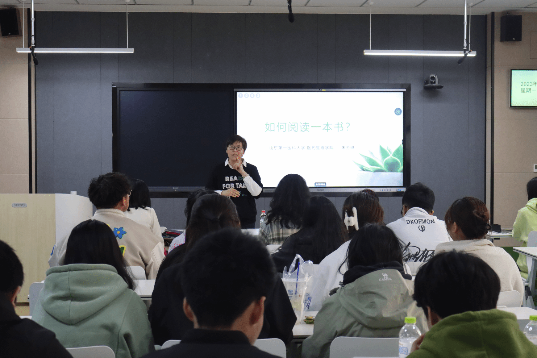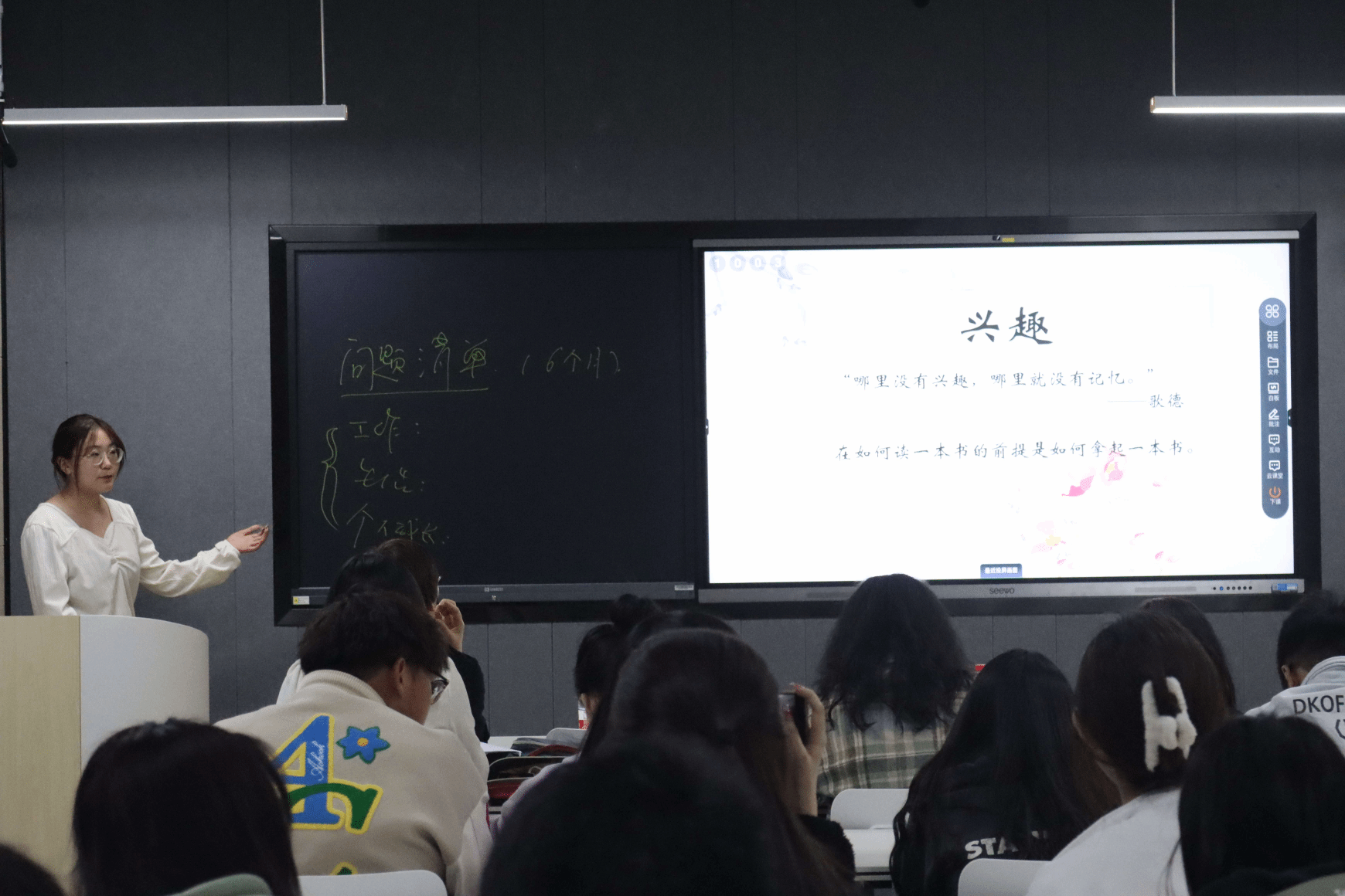活动中,朱芳琳老师首先从阅读的效用和如何让去阅读两方面为同学们分享了在读书方面的经验和心得,建议同学们在读书时不能浮躁,应当静心。她指出“阅读是通往成功最便捷的路径”以激励同学们培养读书的习惯。在小组交流环节中各小组派出代表发言,借助课件和视频就如何阅读一本书分享了自己的阅读经历和阅读方法,同时向大家推荐了自己所读过的好书或书中的某个片段,并且对段落进行了朗诵和赏析。发言结束后,各小组互相交流了各自的感受和看法,实现了“双向”的阅读知识共享,让大家了解到更多有价值、有内涵的书籍。最后,老师总结发言,并做了指导讲评,她指出创新来源于阅读,希望同学们明确阅读目的,放平心态去享受阅读过程,提高阅读效率,有选择性地阅读,同时要学以致用,做到知行合一。同学们纷纷表示老师的讲解深入浅出,语言通俗易懂,大家在轻松愉快的气氛学到了许多实用的阅读技巧。