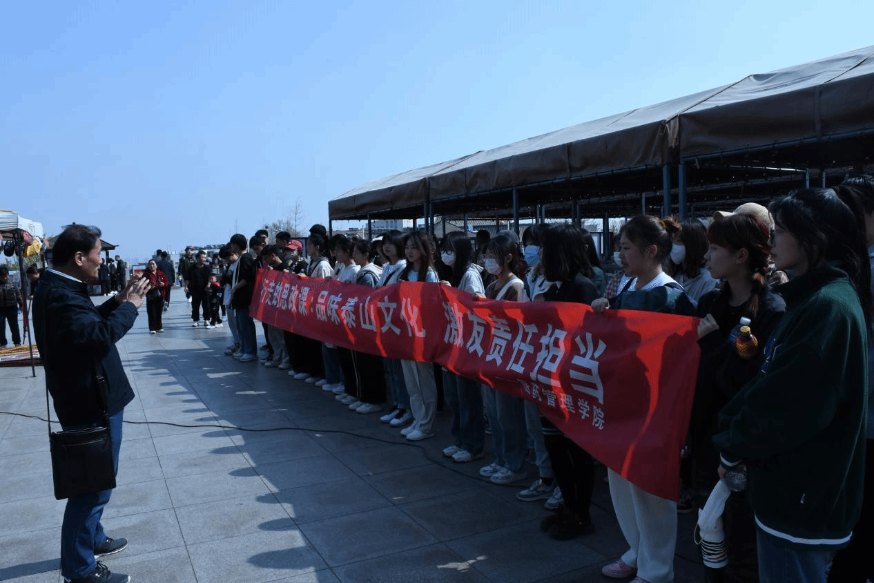 为践行党的二十大精神,更好地了解和传承泰山文化,培养员工的爱国主义情怀,3月29日下午,球王会邀请马克思主义公司经理许彦彬教授带领2022级公共管理类三班全体同学,走进泰山开展“行走的思政课:品味泰山文化 激发责任担当”主题思政实践教学活动。通识教育部部长孙琳婧、国际教育公司党委副书记杜宝萱现场观摩指导。球王会党委副书记任纬兵,学工办主任董灵芝,辅导员刘晓丹、张少儒参加活动。