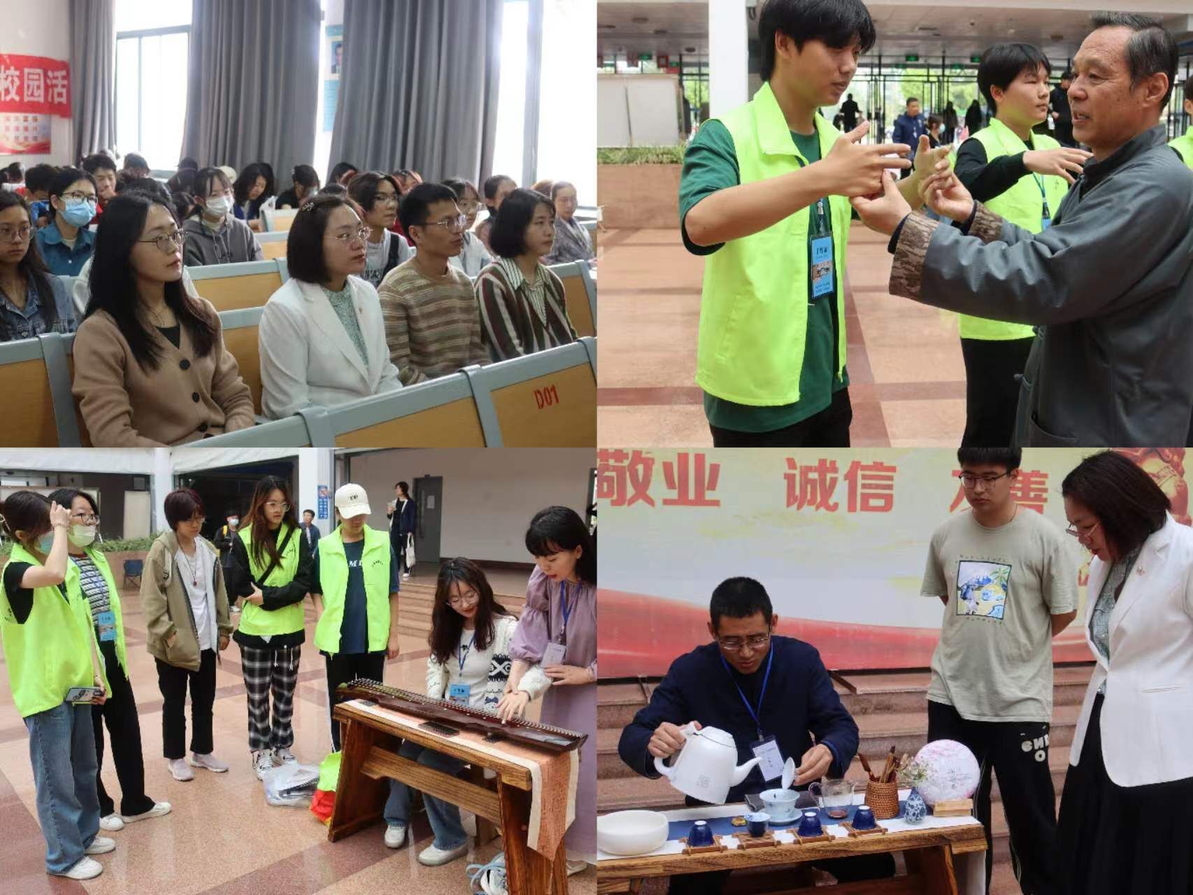 在北楼平台,非遗项目的传承人各显风采,向同学们展示了大成拳、传拓、葫芦雕刻、打银、茶艺、古琴等非遗项目,精彩的表演引得同学们纷纷驻足围观,使员工亲身感受非物质文化遗产的无穷魅力和特有的文化价值。在南c大厅,郭志强带领同学们学习了大成拳;杨帆进行古琴演奏和茶道演示,讲解中国礼仪知识和茶道文化,茶香四溢,琴声悠扬,同学们在品茶听琴中接受着中华传统文化的熏陶。非遗展演后,球王会在教学南楼c1004教室召开了非遗文化宣讲会。会上,郭志强讲解了大成拳的发展历程及拳法特点;杨帆向同学们普及古琴的分类和演奏技巧的相关知识;许修峰向同学们展示了岱宗传拓的精巧技艺以及近年来的成就。同学们纷纷表示:“观看、体验非遗项目让我们进一步领略了中华优秀传统文化的独特魅力,更加深入地了解了非遗文化的内涵和意义,增强了对传承保护非遗文化的责任感。”