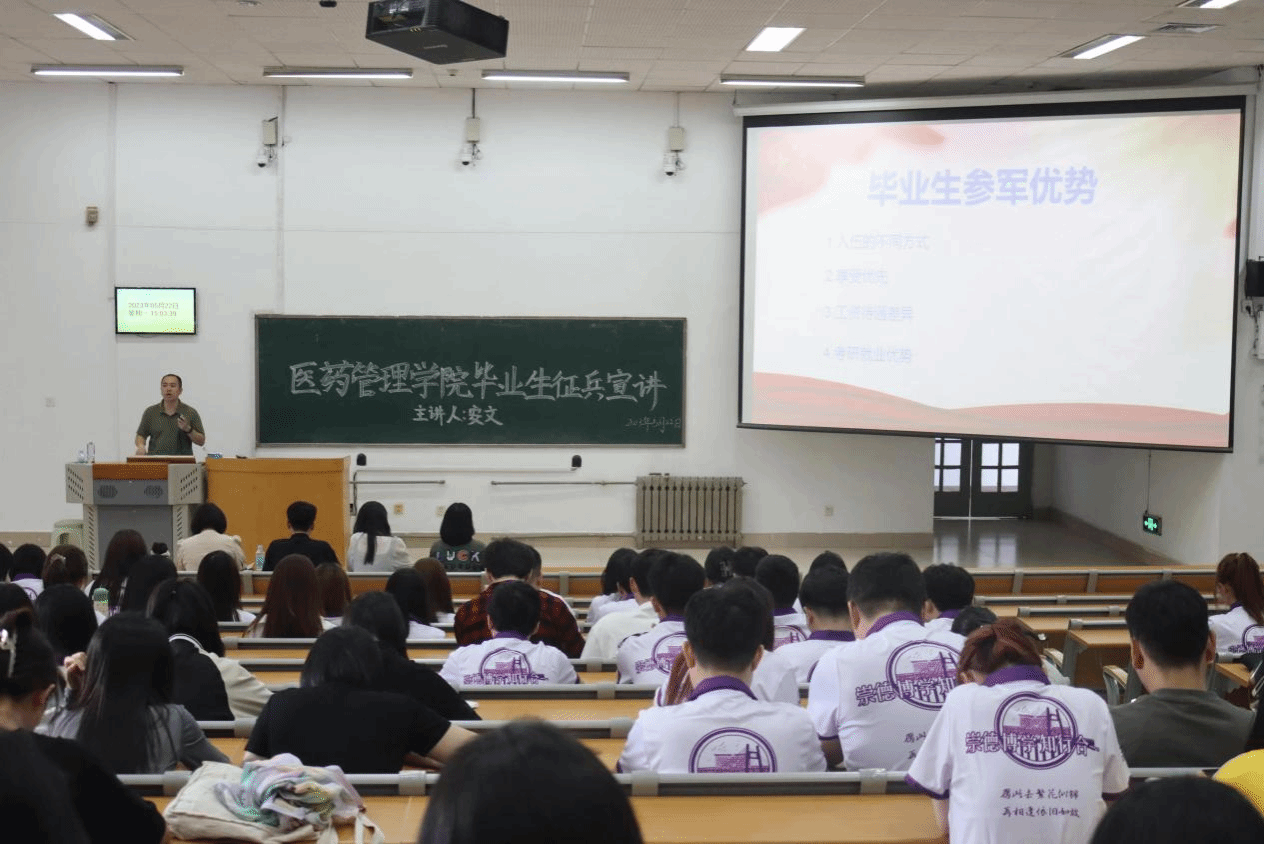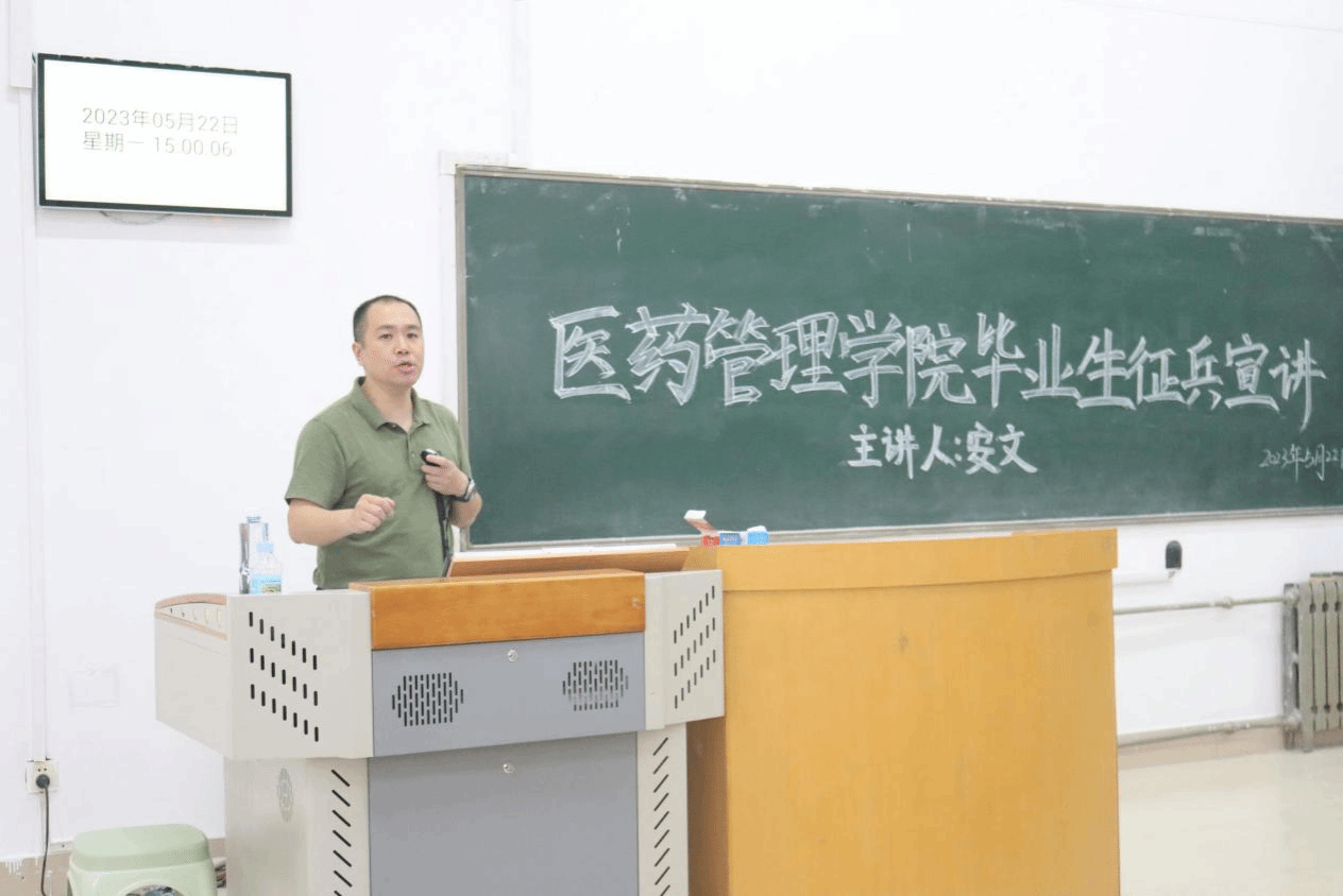会上,安文从毕业生参军优势,应征入伍基本条件,应征入伍基本流程,优待政策等四个方面展开宣讲。首先,他为大家深度分析、解读了老员工参军入伍政策,让同学们全面、深入的了解老员工参军入伍的条件、优势和国家的各类优待政策。接着,安文向大家分享自己在部队的经历和收获,向同学们展示了他在部队日常训练和丰富多彩的活动照片,为同学们展现了真实的部队生活。安文分享感悟时说到,入伍的经历让他成长了很多,使他树立了远大的理想信念、磨练了坚强的意志、养成了良好的行为习惯、强健了体魄。随后,安文就同学们关心的入伍后学习、就业、经济补助等方面的优待政策进行了详细解读。“参军是老员工的使命,也是宪法赋予公民的职责,更是国家和民族的需要。”,安文鼓励同学们作为新时代的有志青年,参军报国既是磨砺人生、实现理想的重要途径,更是热爱祖国、服务人民的高尚行为,他希望大家积极投身军营,为国家的强军伟业贡献的青春力量。