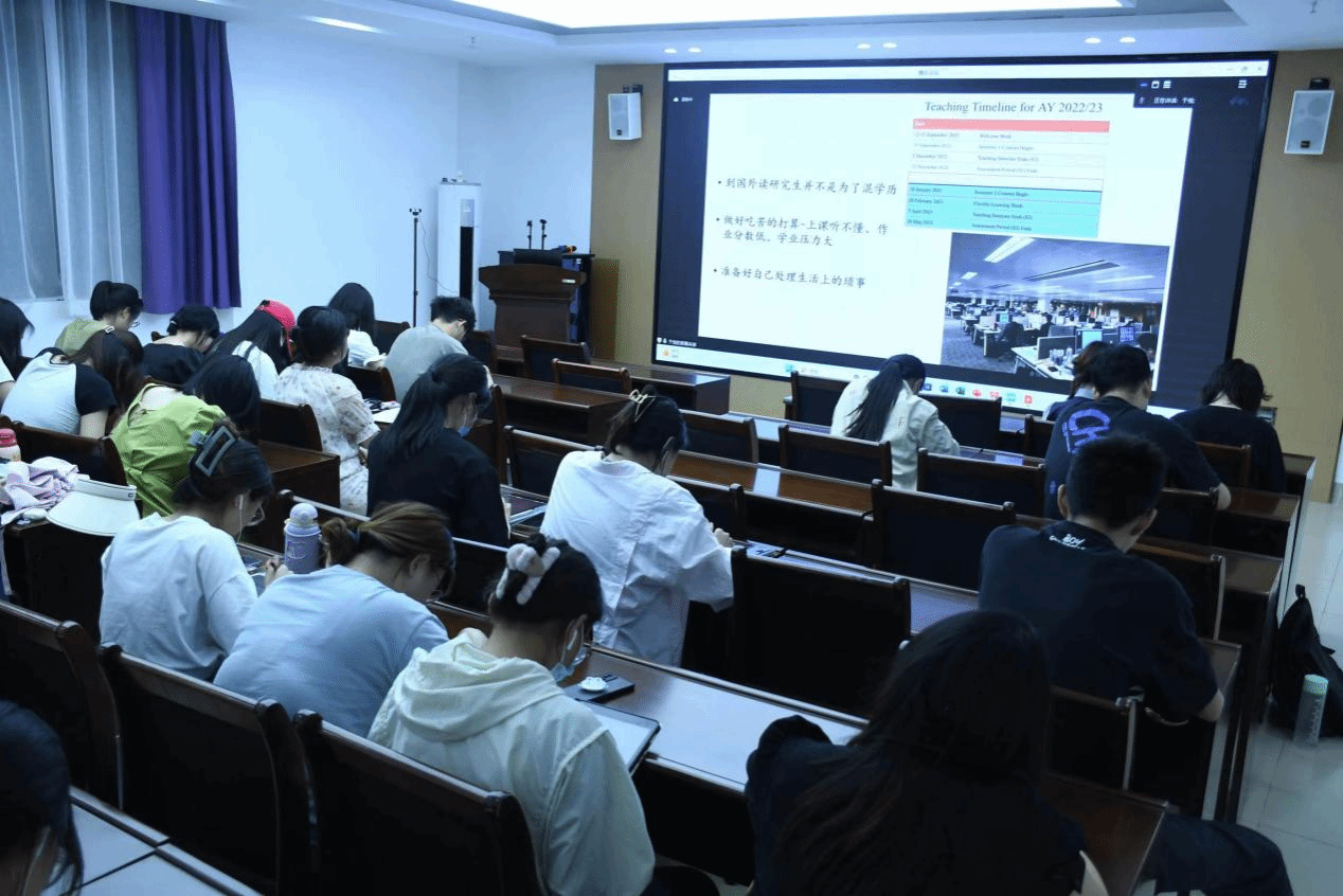 蒋云磊为同学们讲解了员工出国(境)政策、留学申请方法以及主要的出国渠道和出国项目,并就在校老员工留学的奖励政策和注意事项展开了详细介绍。他表示,面对当下越来越难的考研和就业形式,出国留学不失为一种更好实现个人价值的方式,同学们可以结合自身专业特色、学业水平以及人生理想合理地选择留学去向。