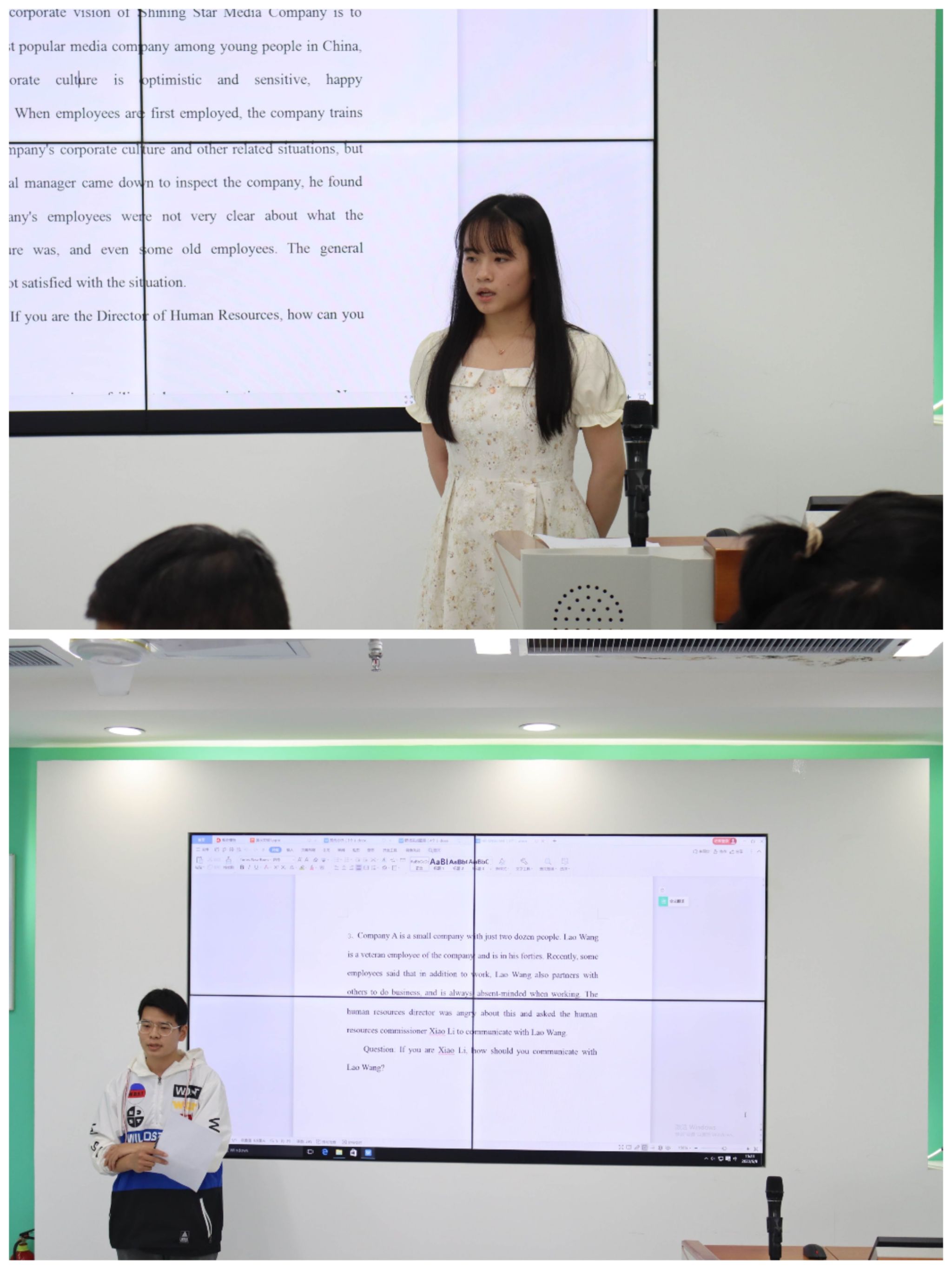 为保证选拔赛的公平公正,大赛评委由两部分构成,一是邀请了人力资源管理系大赛指导经验丰富的老师参加,二是邀请上届国赛特等奖、一等奖获得者参加(19人力的王秋悦、王星匀、舒悦)。评委老师特别是上届大奖获得者现场给予了选手极其精准的点评,参赛选手们获益匪浅。
