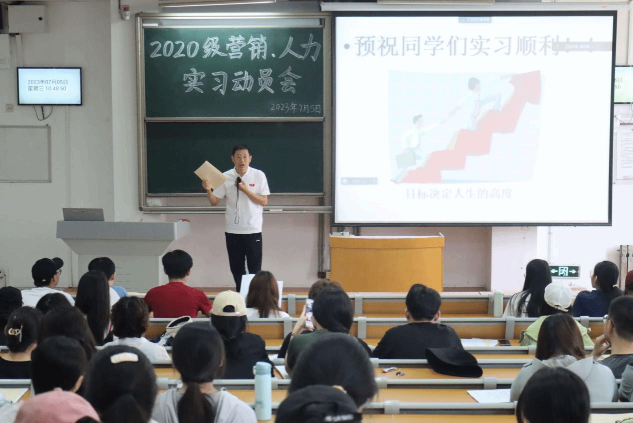 为帮助员工明确实习任务,树立正确的实习和就业观念,7月5日,球王会在南C1002教室召开2020级营销、人力专业实习动员大会。公司党委副书记任纬兵、市场营销系主任崔行武、教学办主任高娟、辅导员杨苗苗及2020级营销、人力专业同学参会。