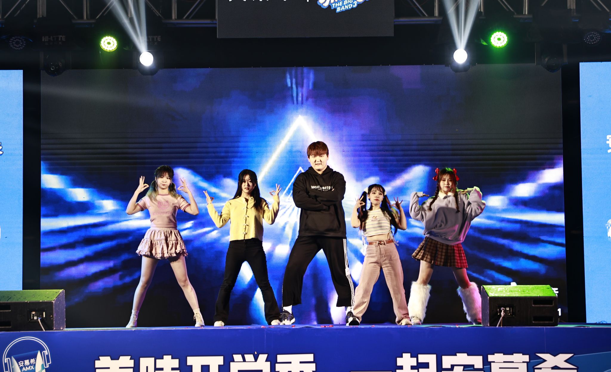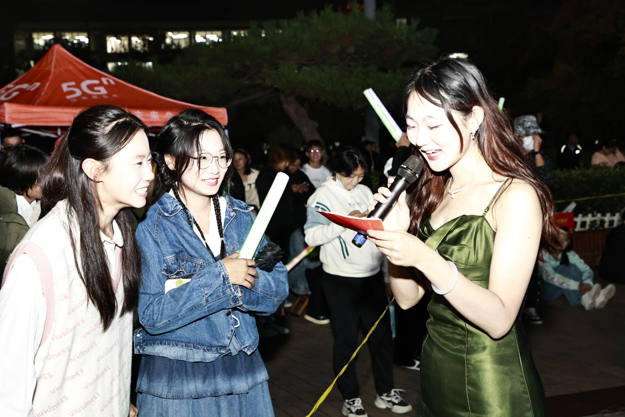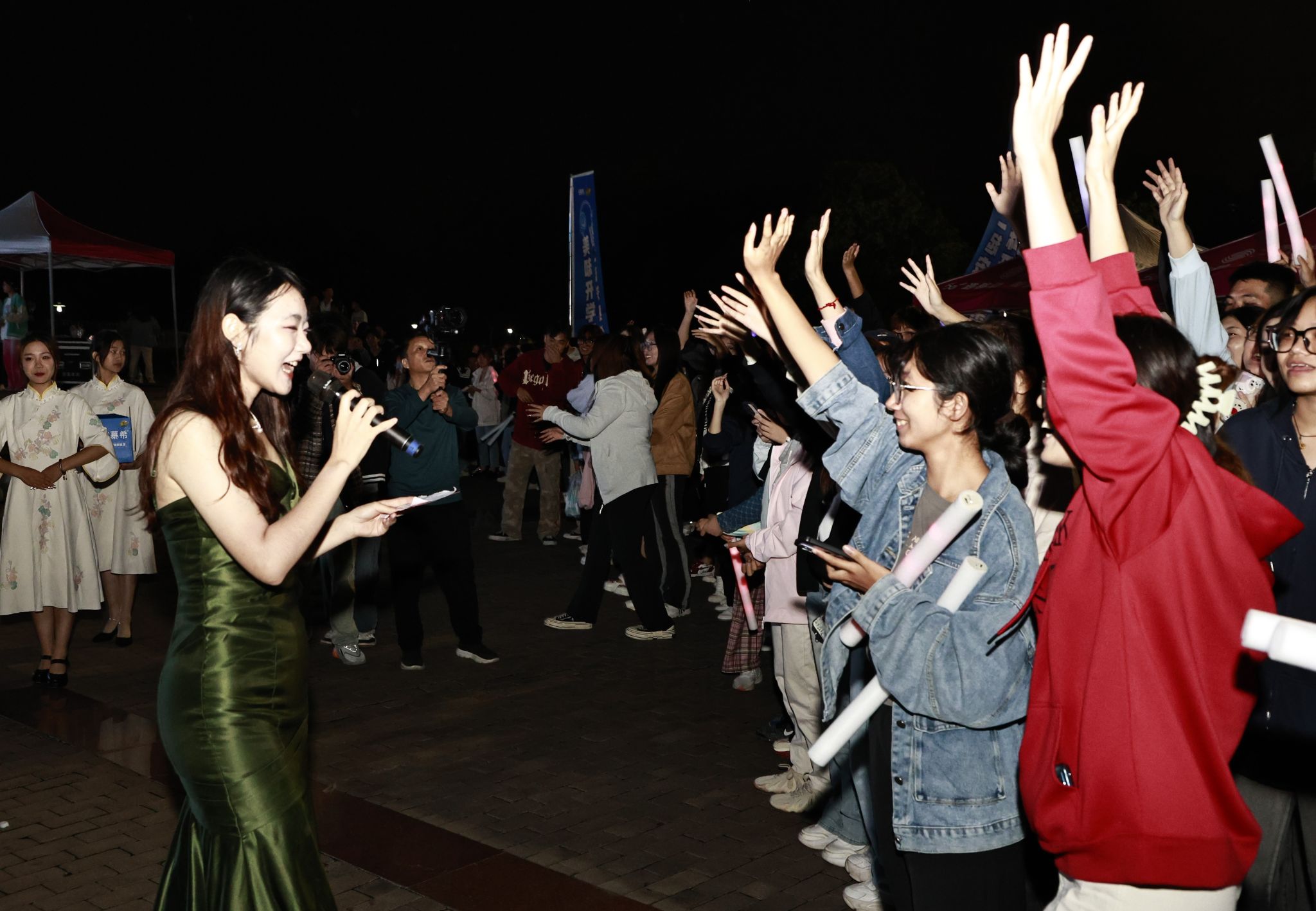 本次音乐会在舞蹈《面纱》中拉开帷幕,活力四射的舞蹈、动感的音乐和绚丽的灯光,瞬间让现场气氛活跃起来。台上,《红日》《梦中人》《篇章》《6ackpack》等好歌不停,舞蹈《幻想童话》《Queencard》嗨翻全场,两支老员工乐队带来的《河流》《想去海边》《还我蔚蓝》,洋溢着青春与活力,挥洒着自由与力量,将音乐会氛围推向了高潮。台下,同学们热情似火,挥舞着荧光棒,跟着节奏一起蹦唱,欢呼声、掌声、歌声回荡在校园的每个角落。中场环节,妙趣横生的猜字谜游戏吸引了众多同学参与,也给欢乐的校园平添了几分传统的韵味。