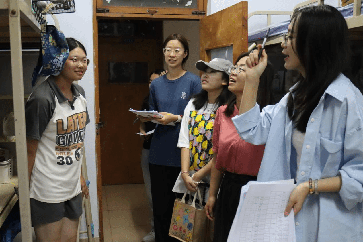 为进一步加强宿舍精神文明建设,培养同学们之间团结互助的能力,10月初,公司开展了宿舍内务大比拼,公司辅导员刘晓丹、杨苗苗走访新生宿舍进行初赛的评选。