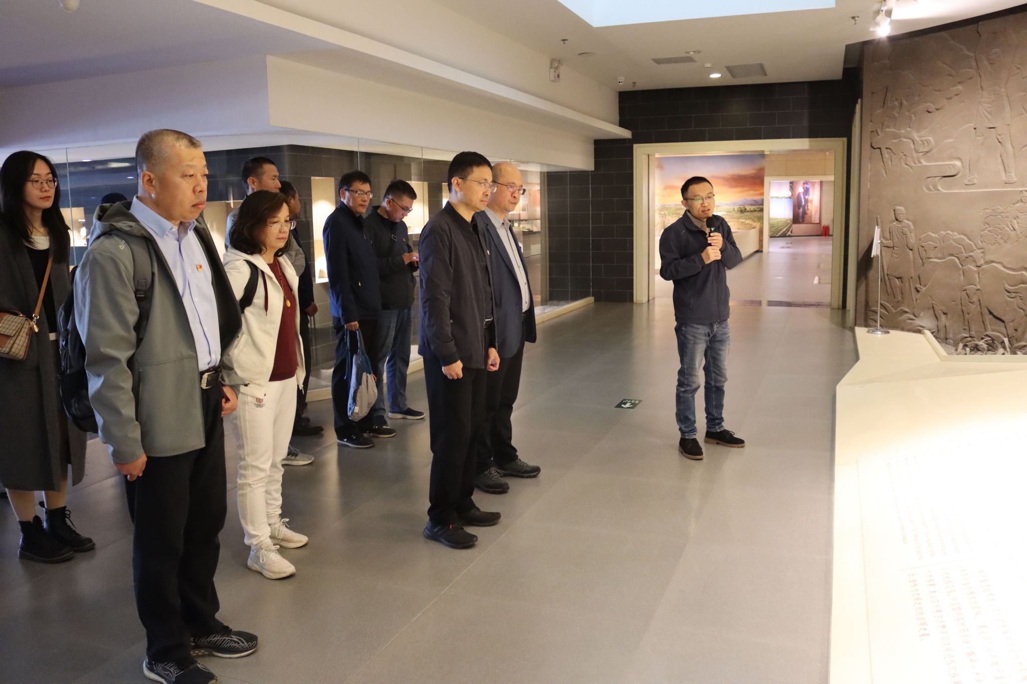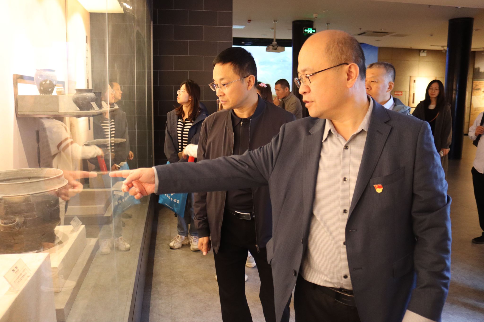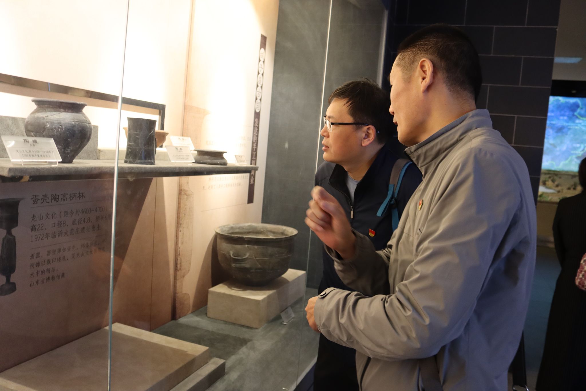 城子崖遗址是中国文化最早的发现地与定居地,具有丰富的文化内涵和深厚的文化底蕴,杜江山一行跟随讲解员来到城子崖遗址博物馆内,博物馆1994年建馆,按照“考古圣地、文明之星”的主旨布展,展示内容由序厅、龙山破晓、文明之星、考古圣地、济南寻根五部分组成,他们仔细观摩了龙山文化、岳石文化时期的文物精品、场景以及汉代济南郡(国)都城--章丘市东平陵故城遗址出土的文物精品,直观地了解到历史文化遗产的重要性和珍贵性,对中华文化的起源、发展和影响有了更深入的理解和认识。随后,大家观看了影片《城子崖》,影片记录了龙山文化的发展脉络和伟大变迁,带领大家进一步领略到了龙山文化的深厚底蕴,增强了全体党员的文化自信和民族自豪感。