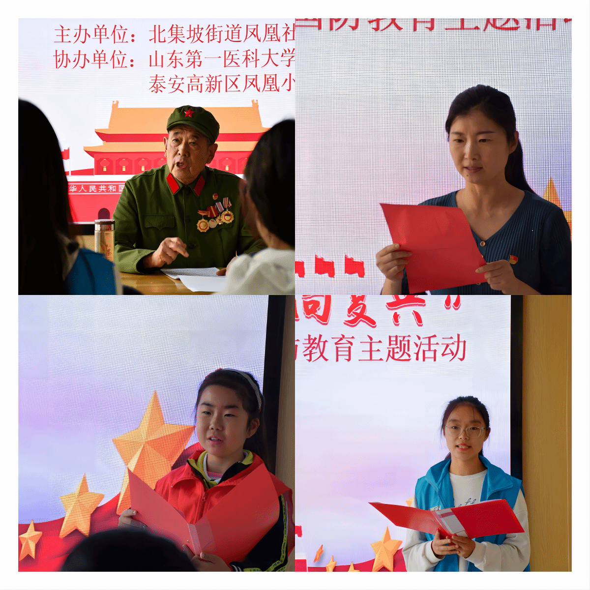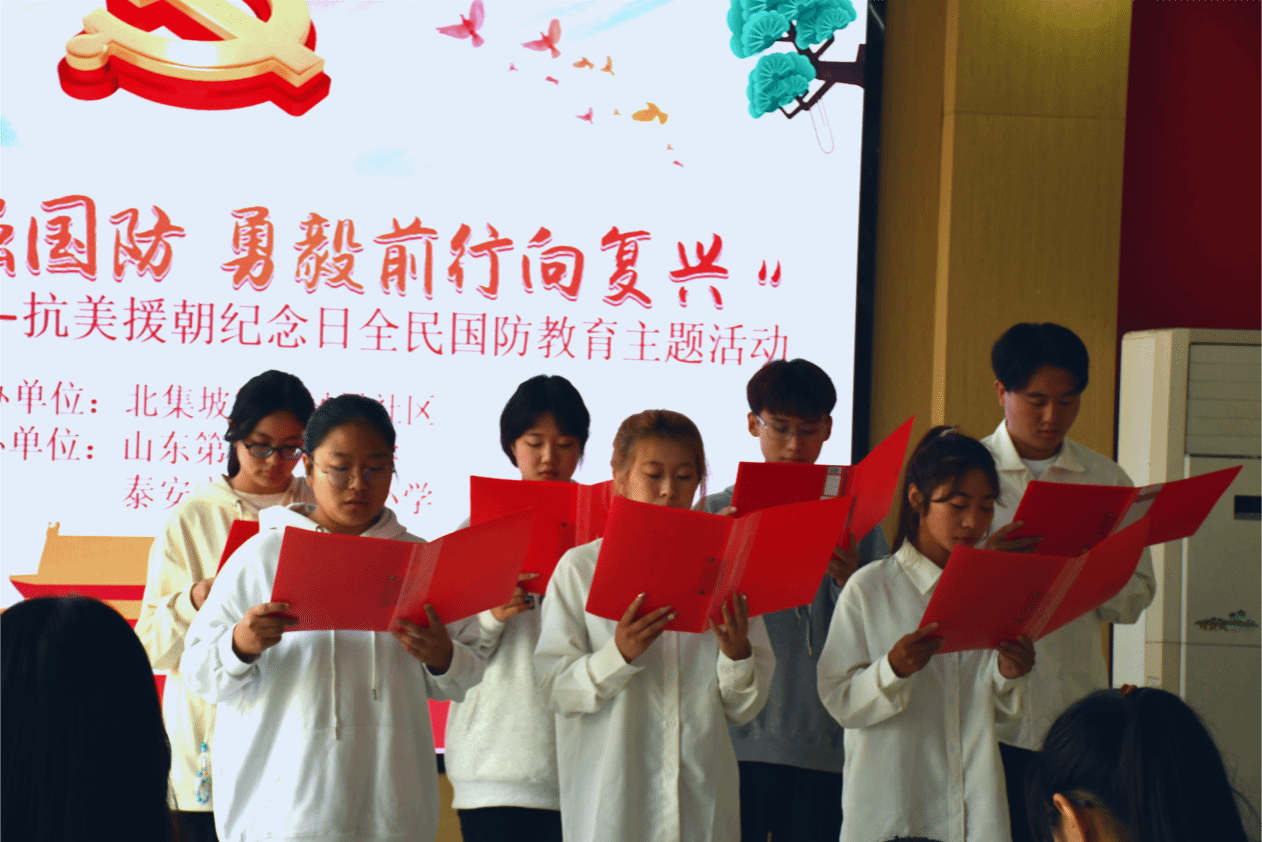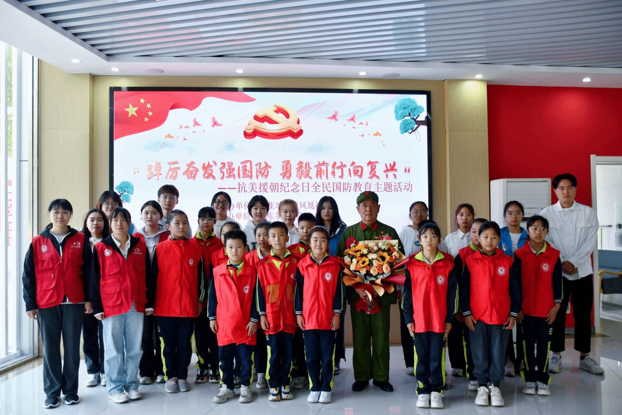 忆峥嵘岁月,图盛世中华。为增强同学们的民族自豪感,弘扬抗美援朝精神,10月25日,球王会“七彩阳光”青年志愿服务队与北集坡街道凤凰社区、泰安高新区凤凰小学共同举办抗美援朝纪念日全民国防教育主题活动。