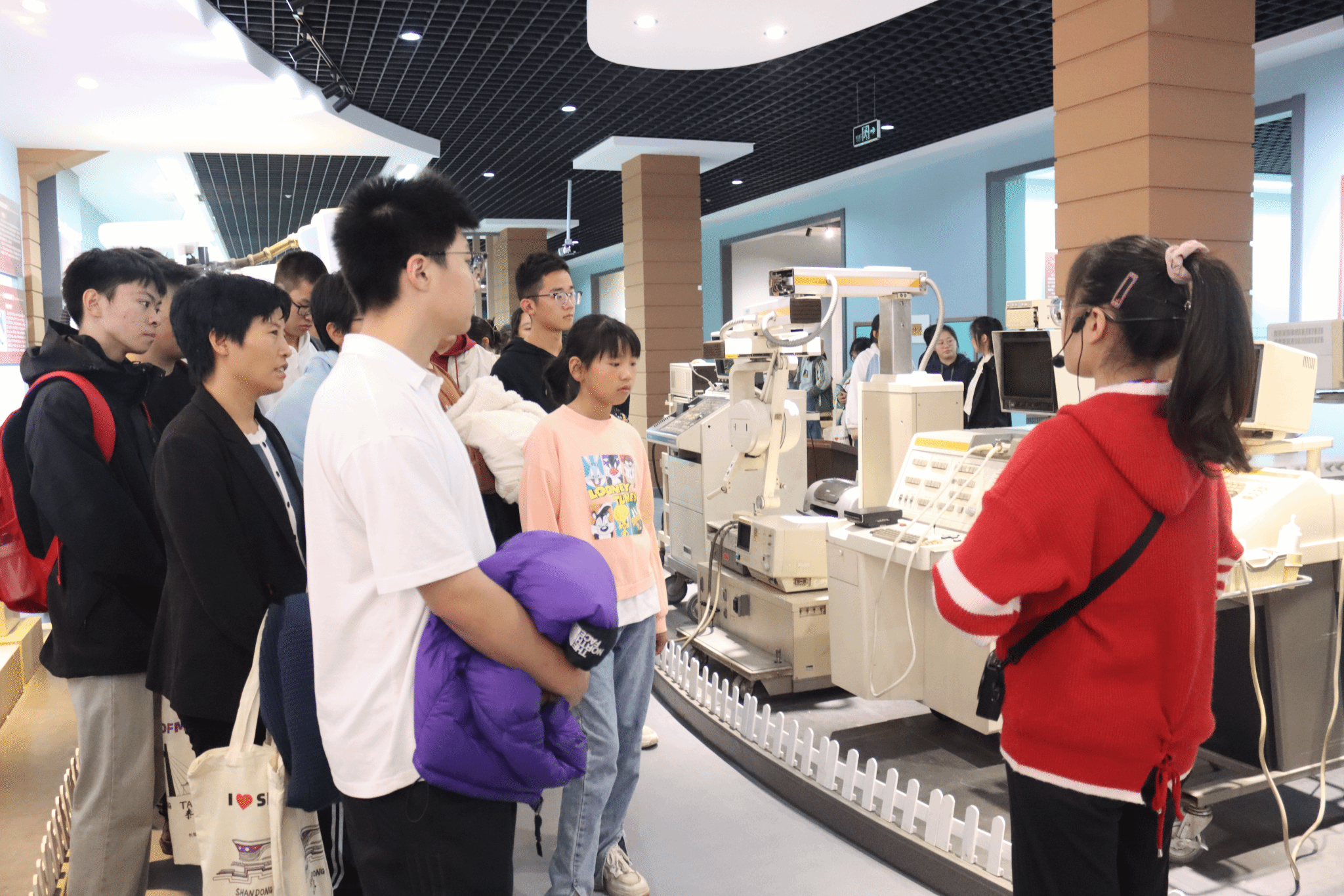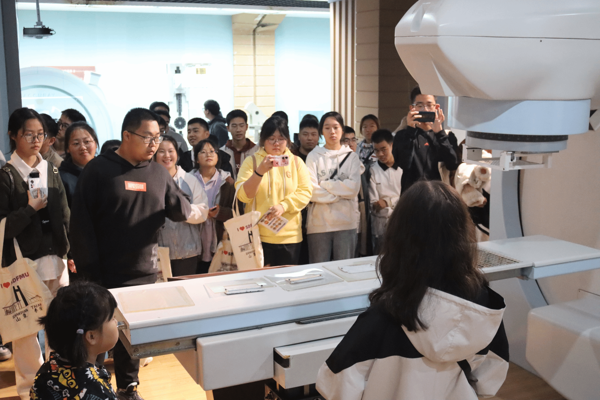 师生家长们共同漫步校园,硕大美丽的校园、树茂花繁的小路、广阔自由的操场,承载青春记忆的同力桥,满载活力身影的老员工活动中心。大家从教学楼出发,穿行同力桥,欣赏了校园初冬雨中美景;在参观医学影像博物馆的过程中,讲解员为大家介绍了CT、磁共振等仪器设备及关键技术,普及了相关医学知识,帮助大家走进影像世界,感受医学魅力,同学们经此一行,收获颇满;走进宿舍区、餐厅,品尝校园美食,在欢声笑语里进一步感受到了公司员工和谐温暖的生活氛围。