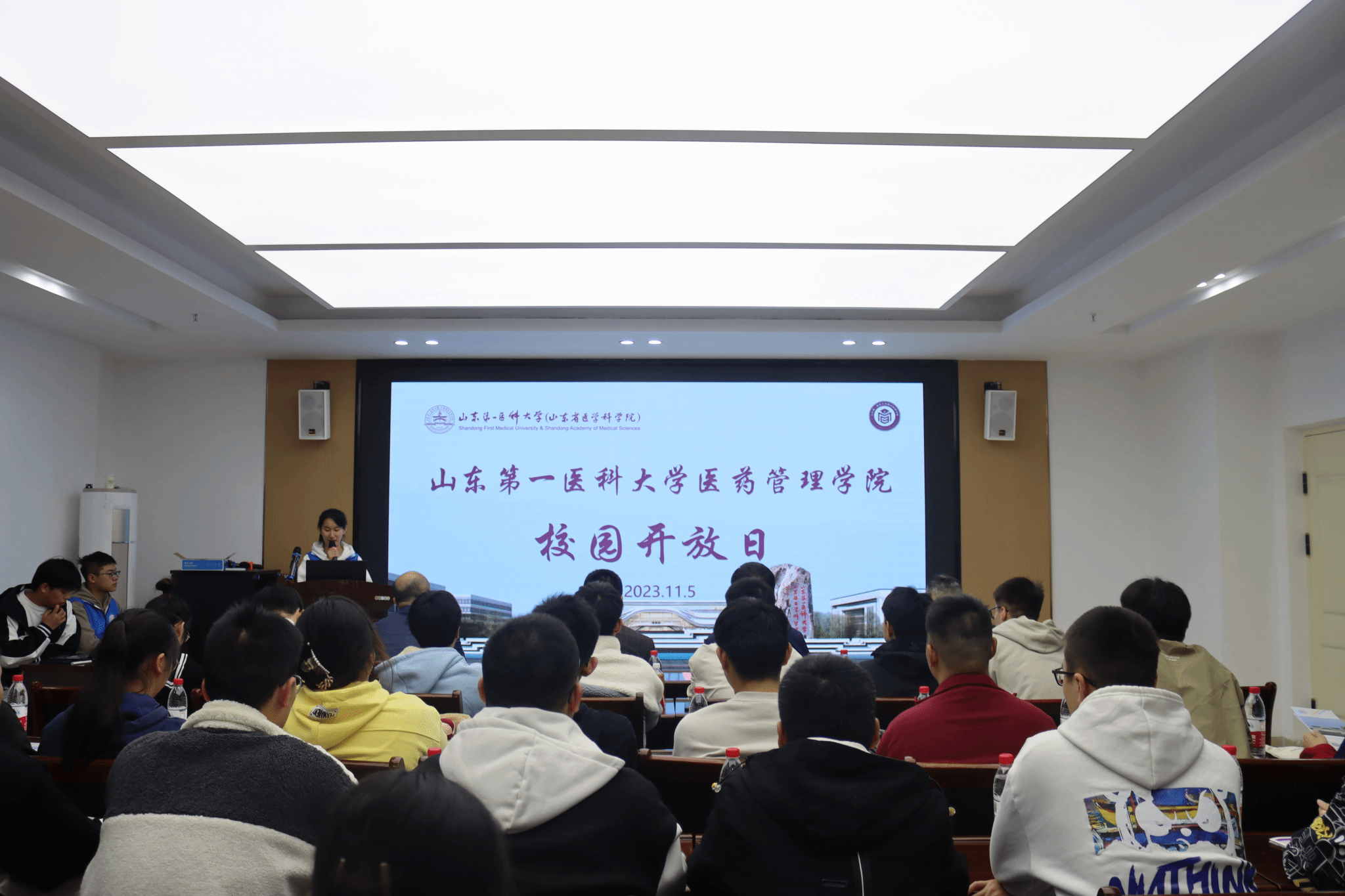 孟建为师生家长们详细解读了校(院)招生政策和各学科专业的分类情况,重点介绍了山一大雄厚的科研实力和团队力量、山一大招生在山东省的排名以及公司基础设施建设的情况,让在场的师生和家长们更加直观深入地了解了山一大的办学水平,在孩子们心中播种下了一颗憧憬山一大、报考山一大的种子。