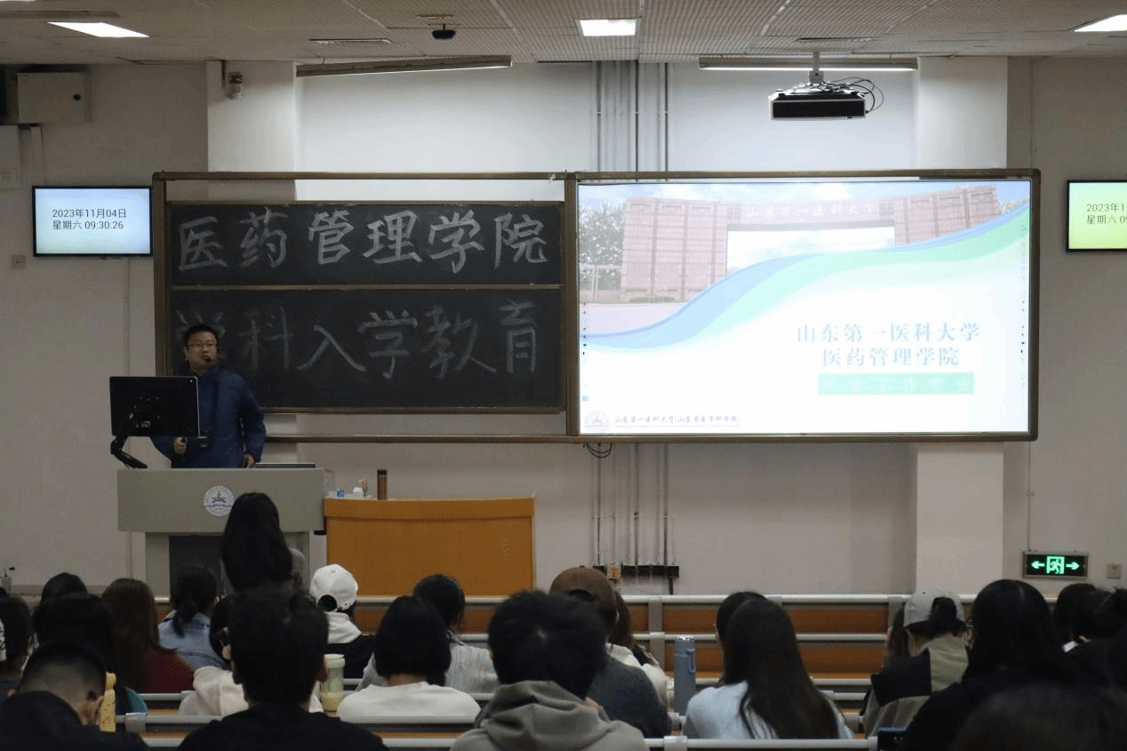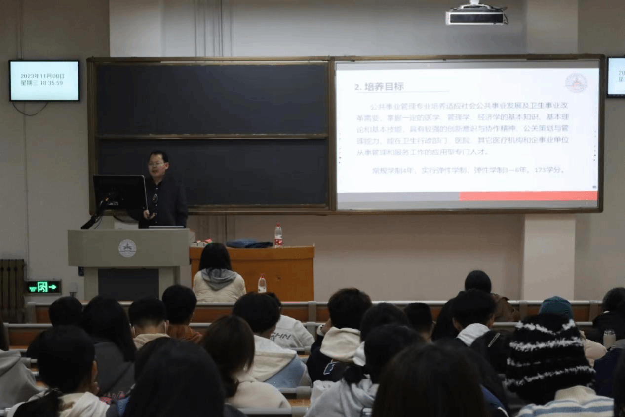 公共事业管理系主任袁飞老师在宣讲中指出,公司公共事业管理专业以新文科、新医科为指导理念,培养新时期“医管融通、懂医学、会管理”的专业人才。他结合往届优秀员工为实例,展示公共事业管理专业多元化的就业方向和较高的考研率。丰富的教学经验、优质的团队队伍不仅能为同学们提供专业的学科指导和发展规划,也能对同学们未来考研就业方面提供重要指导。同时他希望同学们尽早明确努力的方向,做好未来职业的发展规划,朝自己设定的目标努力奋斗。