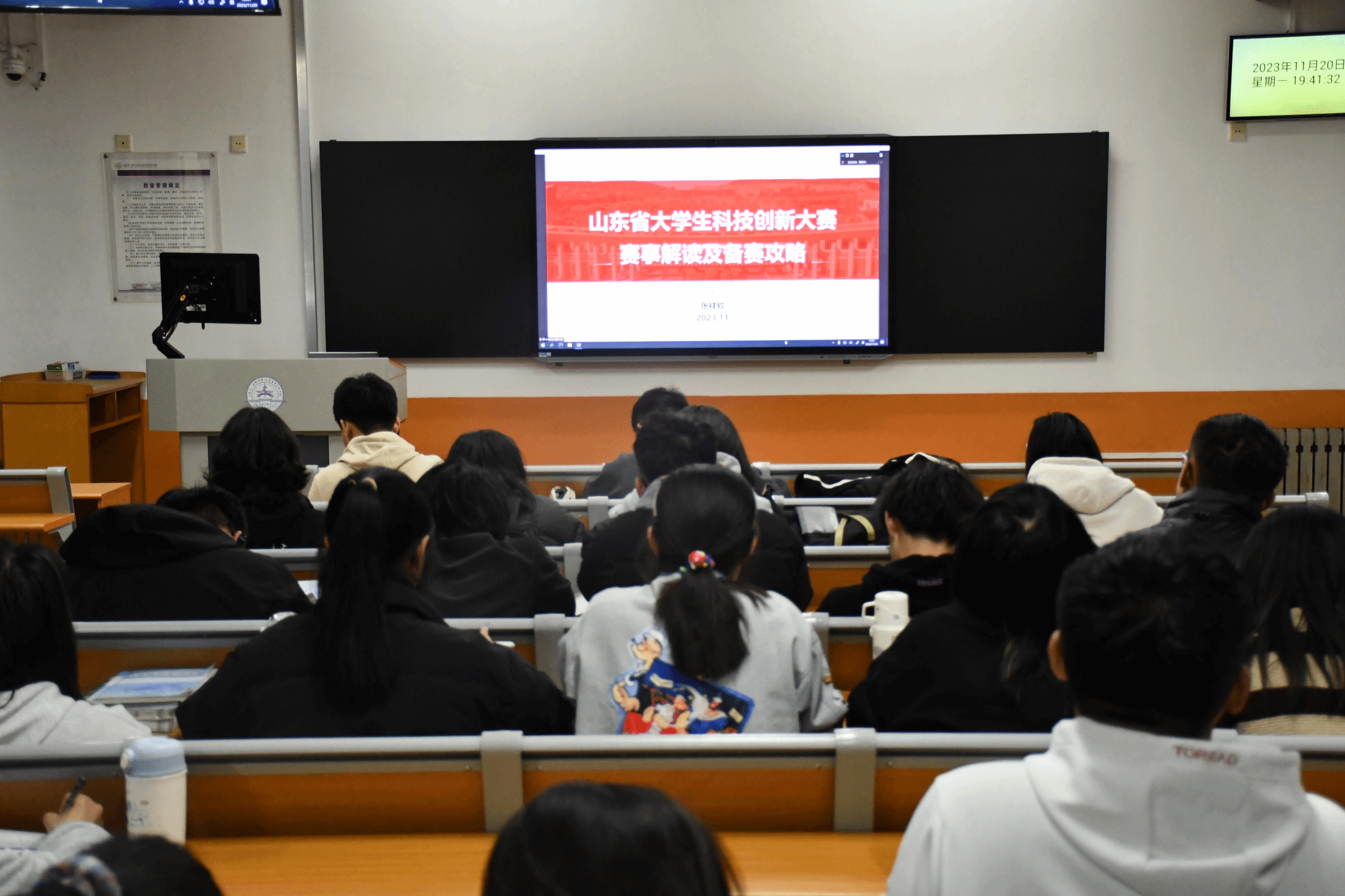 张祥钦分别从大赛基本情况、大赛评审要点解读、大赛展示材料制作、创新类赛事分析、关于备赛心得五个方面进行介绍。他着重分析了新旧动能转换“十强”产业赛道项目类别中适合同学们参赛的项目,并指出评审指标将分为科学性、创新性、实用性、成果和效益四个部分,参赛队伍要在项目有成果和效益的基础上增强科学性和创新性。此外,他向参赛队伍提供了几点自己的心得,不仅要梳理清晰参赛项目的逻辑线,拥有一个好的团队,还要有高水平专家辅导,同时他也祝愿同学们能够在大赛中取得优异成绩。