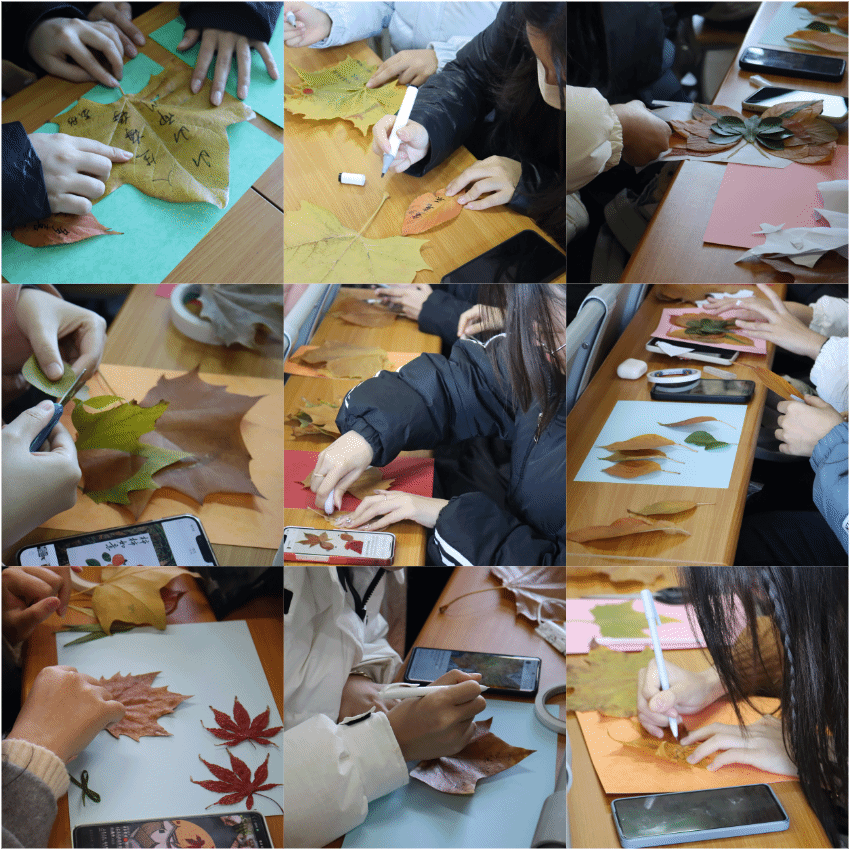 活动中,同学们积极参与,凭借着善于发现美的眼睛和善于创作的双手,深入到校园的自然美景中去捡拾落叶,绘制充满想象力的树叶画,还将自己最喜欢的诗句和最虔诚的祝福写在大自然的馈赠上,制作成了精美的书签,作为学习时的动力和对来年最好的祝福。一缕情丝寄落叶,每一个书签,每一幅树叶画不仅体现了同学们对季节的喜爱,更体现了对大自然的赞美。此次活动中同学们将落叶转化成另一种美的形式保存下来,不仅调动了自身创造美的热情、锻炼了动手实践能力,更使环保意识得到了强化。