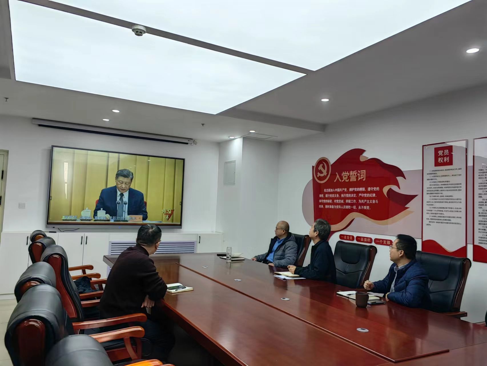 与会人员集体观看了由中央组织部、中央学习贯彻习近平新时代中国特色社会主义思想主题教育领导小组办公室、中央广播电视总台联合制作的《榜样8》专题节目,学习榜样精神,从中汲取奋进力量。
