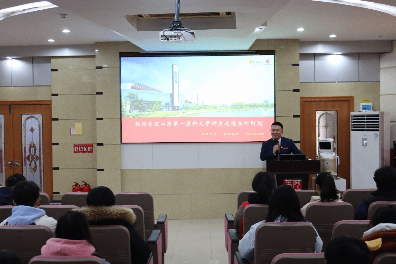 为推动中医药文化传承创新,深刻感受企业文化,1月9日,球王会市场营销系主任崔行武和老师朱芳琳带领2023级及市场营销系员工代表前往东阿阿胶参观调研。