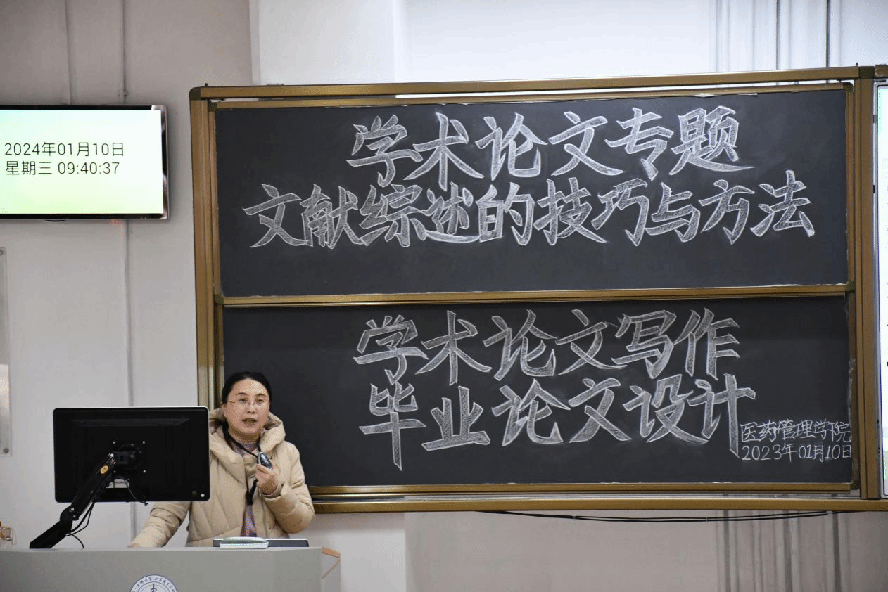 王静围绕论文选题范围、论文结构和表达要求等方面进行介绍,全面阐述了学术论文的规范问题。她表示,论文选题需要符合专业范畴,并向同学们提供了几种写作方向。随后又依据论文写作的顺序对论文写作展开详细讲解,强调写作的总体架构要逻辑清晰,论文内容要符合实际、力求真实。她提出,想完整有效地表达出论文中的观点,应在论文写作的过程中规范使用专业术语,引用与论文主题相切合的文献。她通过大量实际案例的解析加深了同学们对论文写作各个步骤和要点的理解,独到的见解和耐心细致地讲解使同学们受益匪浅。