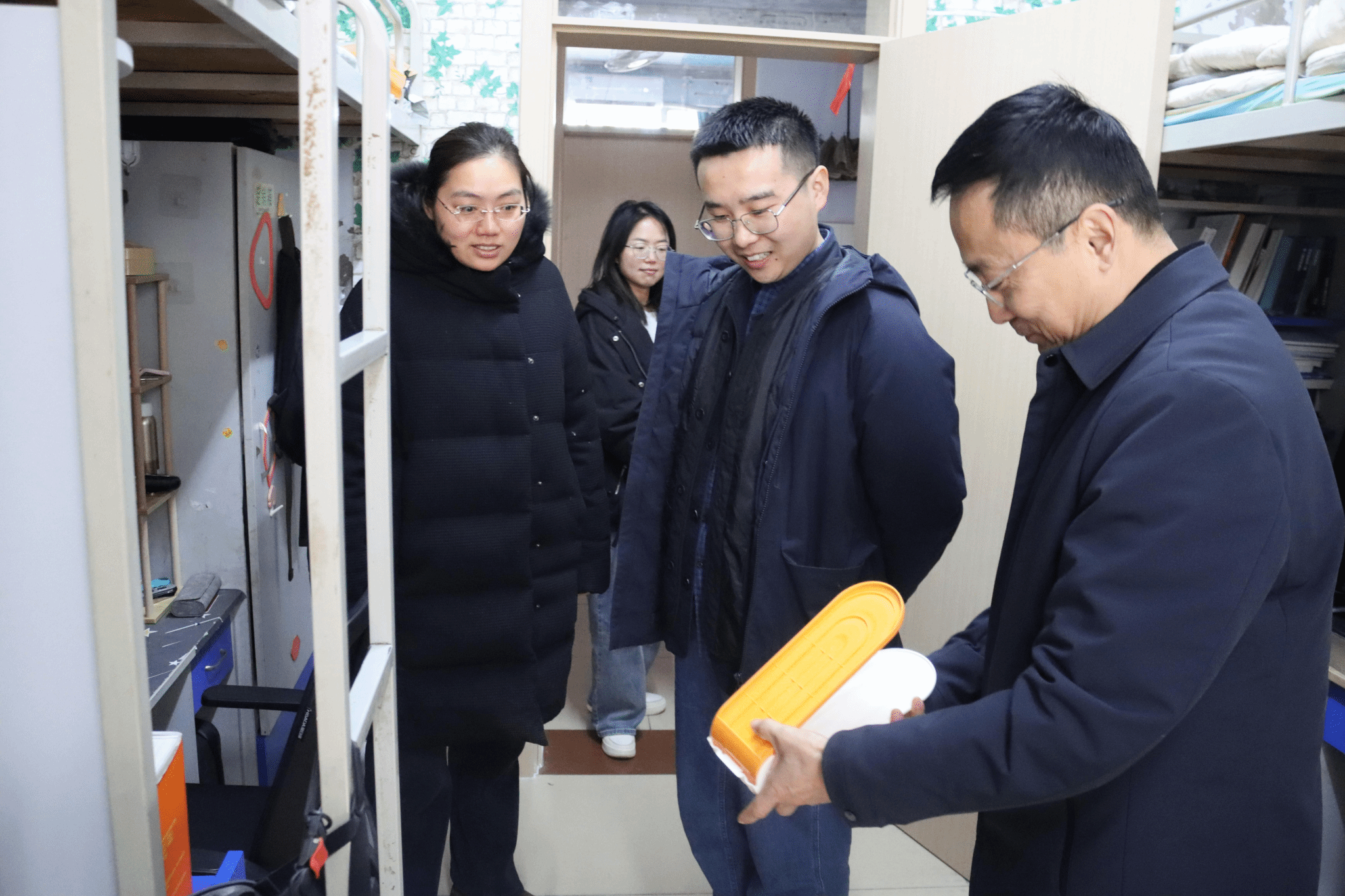 为了解员工学习生活状况,做好员工的日常管理和服务工作,确保开学后各项工作的有序开展,2月28日下午,公司党委书记杜江山和全体辅导员老师走访员工宿舍楼,排查宿舍安全隐患,并为员工送去新学期的关怀与慰问。