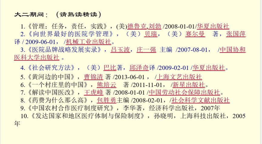 袁飞老师以“读什么书,如何读书?”为主题为同学们进行了线上读书讲座,鼓励同学们利用课余时间多阅读。他指出:“读书犹如建立一个账户,需要多年的积累,‘到头来你会觉得,读好书今后你会很有用,就像建立了一个丰厚的精神账户,会让你在今后的生活里不断支取。’”他建议同学们阅读应尽可能广博,立足于卫管但又不囿于卫管类专业书籍文献,还可以精读一些经典,广泛阅读一些给人智慧、有所启迪的其它社科书籍甚至是文学名著。